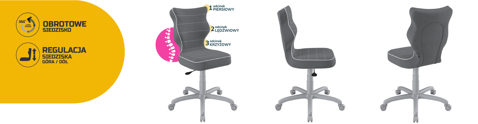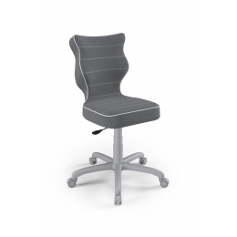 Šedá čalouněná židle z kolekce Petit byla vytvořena s ohledem na děti. Dokonale tvarované sedadlo zajišťuje, že se mladí lidé při psaní domácích úkolů, studiu nebo prohlížení online obsahu nebudou hrbit. Náš výrobek zabraňuje vzniku posturálních vad a poskytuje maximální komfort a pohodlí. šedá dětská židle k psacímu stolu se nepochybně bude líbit každému! Čím se vyznačuje šedá židle pro mládež ze série Petit? - Pohodlné, ergonomické sedadlo z plastu, - sedací deska s ocelovou přímou pákou, - plynový zvedák z oceli a plastu, - teleskopický kryt plynového zvedáku z plastu, - měkká plastová kolečka