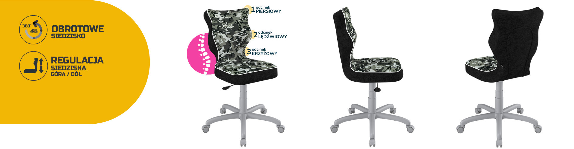 Šedá čalouněná židle z kolekce Petit byla vytvořena s ohledem na děti. Dokonale tvarované sedadlo zajišťuje, že se mladí lidé při psaní domácích úkolů, studiu nebo prohlížení online obsahu nebudou hrbit. Náš výrobek zabraňuje vzniku posturálních vad a poskytuje maximální komfort a pohodlí. šedá dětská židle k psacímu stolu se nepochybně bude líbit každému! Čím se vyznačuje šedá židle pro mládež ze série Petit? - Pohodlné, ergonomické sedadlo z plastu, - sedací deska s ocelovou přímou pákou, - plynový zvedák z oceli a plastu, - teleskopický kryt plynového zvedáku z plastu, - měkká plastová kolečka