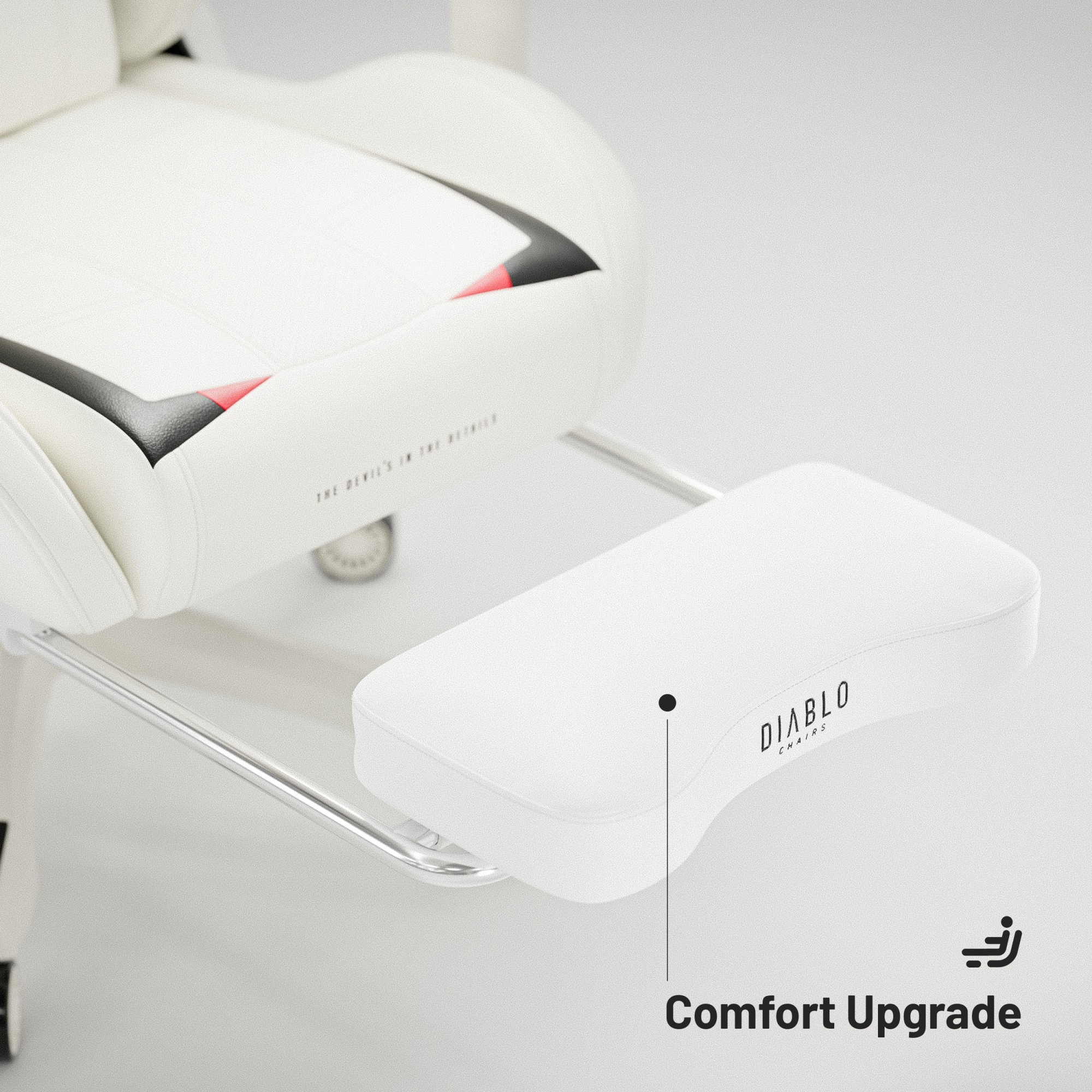 POZOR! Podnožka je určena pro obnovený X-Ray 2.0 ve variantě Normal a King Size. Verze Kido, stejně jako starší verze herní židle, nemají takový systém uchycení. PODNOŽKA K HERNÍMU KŘESLU DIABLO X-RAY 2.0: BÍLO-ČERNÝ Upgraduj křeslo k psacímu stolu a získej možnost narovnat nohy po dlouhé herní, pracovní nebo studijní seanci. Další podnožka k herní židli X-Ray 2.0 Normal Size i King Size ti umožní dosáhnout nejvyšší úrovně pohodlí. Díky němu se rychleji zregeneruješ a budeš připraven na další výzvy. ZVEDÁŠ NOHY, ZVEDÁŠ KOMFORT Herní křesla jsou špičkou, pokud jde o ergonomii a pohodlí. Poskytují skvělou oporu pro záda, ramena, lokty nebo předloktí. Někdy je však možnost volně si natáhnout nohy tím, co potřebujete nejvíce. Podnožka ti zaručí neuvěřitelně pohodlné místo k relaxaci a navíc ti umožní zavést pravidelné, prozdravotní změny polohy při sezení. VÝJIMEČNÁ RELAXACE BĚHEM NĚKOLIKA SEKUND Trvale připevněná, zasouvací opěrka nohou je mimořádně praktickým řešením. Vždy se nachází na stejném místě, takže během okamžiku připravíte křeslo na výjimečný relax. Co je důležité, stejně rychle a snadno ho schováš pod sedadlo, abys mohl v klidu pokračovat v dalších úkolech. DOKONALÉ DUO Bílá podnožka je určený doplněk k modelu Diablo X-Ray 2.0 Normální a King Size. Vytvořili jsme ho z odolné ekokůže HDS™, na které jsme umístili černý, vyšívaný nápis Diablo Chairs. Opěrka na nohy tvoří jednotný celek s herním křeslem v bílo-černé barvě. Pokud ti záleží na originální kombinaci, můžeš zkombinovat bílou podnožku s jakoukoli variantou X-Ray 2.0 Normální nebo King Size. TO MUSÍŠ VĚDĚT PŘED NÁKUPEM Ne všechny modely herních křesel Diablo X-Ray mají možnost montáže podnožky. Opěrka na nohy je určena pro obnovený X-Ray 2.0 ve variantě Normal nebo King Size. Verze Kido a King, stejně jako starší verze herního křesla, nemají upevňovací systém. Abyste zjistili, zda je vaše křeslo kompatibilní s podnožkou, podívejte se pod sedadlo. Pokud uvidíš továrně připravené otvory, můžeš jej bez obav přidat do košíku. NEJBEZPEČNĚJŠÍ ÚDAJE A TIPY TÝKAJÍCÍ SE BEZPEČNOSTI POUŽÍVÁNÍ Maximální povolená hmotnost je 30 kg. Vzdálenost konce podnožky k sedadlu je 34 cm. Užívej si nadpozemský komfort, ale nehraj si se zákony fyziky. Sezení nebo posazování dětí na rozložené podnožce může vést k převrácení křesla. Vyzkoušej různé polohy, abys našel tu nejpohodlnější pro sebe, nebo využij naši radu. Na základě vlastních zkušeností a doporučení odborníků na ergonomii doporučujeme při používání podnožky naklonit opěradlo dozadu. Montáž podnožky je intuitivní a rychlá. V sadě najdeš šrouby a odpovídající imbusový klíč.