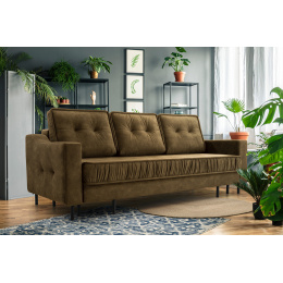 Moderní pohovka s úložným prostorem. Pohodlné sezení Vám zajistí kombinace pružin falistých a bonellu s kvalitní PUR pěnou. Jednoduchým rozkladem vznikne lůžko vhodné k příležitostnému spaní. Pohovku dodáváme v několika barevných provedeních, které také naleznete v naší nabídce.