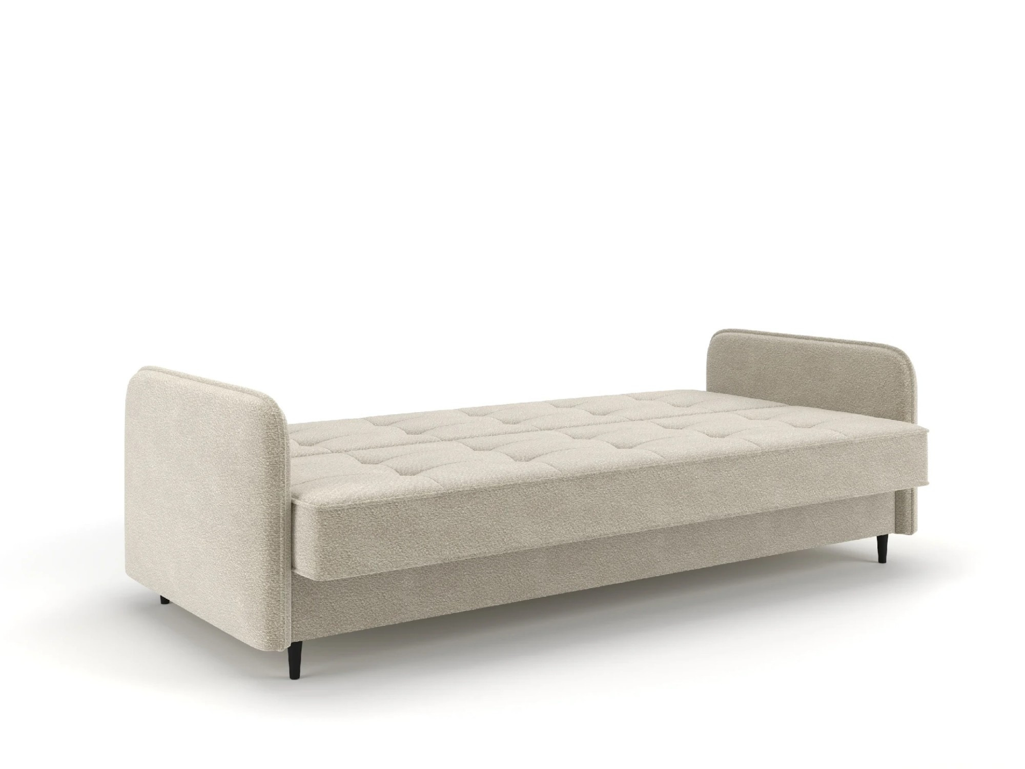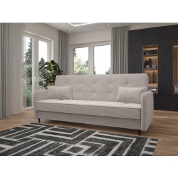 Pohovka AURELIA – módní vzhled, měkké sedadlo a praktické využití Pohovka Aurelia je návrh pro ty, kteří hledají harmonii mezi komfortem, estetikou a praktickými řešeními. Její moderní a zároveň jemná forma byla zdůrazněna módní tkaninou bouclé, která interiéru dodává teplo a eleganci. To je nábytek, který se snadno uplatní jak v minimalistických, tak i v klasických aranžmá. Pohovka Aurelia je vybavena funkcí spaní, díky které ji během několika okamžiků proměníte v pohodlnou postel. Mechanismus Klick-Klack funguje lehce a spolehlivě, což z něj činí skvělou volbu pro každodenní použití nebo v situacích, kdy přijímáte hosty. Na celé ploše na spaní byly použity bonellové pružiny, které zajišťují vysoký komfort jak při sezení, tak během spánku, a také zaručují dlouhou životnost nábytku. Čalounění z měkké a příjemné tkaniny bouclé dodává pohovce útulný charakter, zatímco prošívané opěradlo a přiložené polštáře zvyšují pohodlí při každodenním používání. Štíhlé, vysoké nožky dodávají celé konstrukci lehkost a zároveň usnadňují udržování pořádku pod nábytkem. Vlastnosti produktu Mechanismus Klick-Klack – rychlé a bezproblémové rozložení pohovky do funkce spaní. Bonellové pružiny po celé ploše – záruka pohodlí a trvanlivosti konstrukce. Čalounění z tkaniny bouclé – módní, měkké a příjemné na dotek provedení, které dodává interiéru útulnost. Polštáře v sadě – zvyšují pohodlí při každodenním používání a relaxaci. Vysoké, štíhlé nožky – lehká vizuální konstrukce a snadná údržba čistoty pod nábytkem. Prošívané opěradlo – elegantní detail zdůrazňující moderní styl pohovky. Úložný prostor na ložní prádlo – praktické místo pro ukládání dek, polštářů nebo přikrývky. Rozměry pohovky, plocha na spaní: 190 × 120 cm, šířka: 204 cm, hloubka: 90 cm, výška: 95 cm, výška sedáku: 46 cm, hloubka sedáku: 55 cm, výška opěradla: 55 cm, výška nožiček: 13 cm. *Všechny rozměry jsou uváděny s tolerancí +/- 3 cm