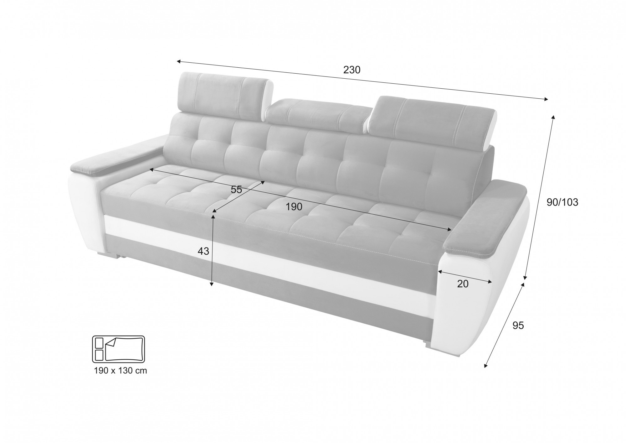 - Praktická funkčnost: Dostatečně velká sedací plocha pro celou rodinu.