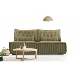 Díky svému kompaktnímu tvaru, který nemá žádné bočnice, je tato pohovka ideální do malých místností a zároveň poskytuje prostor pro tři osoby.