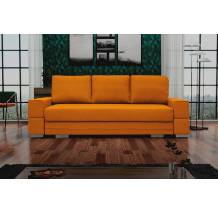 SOFIA je třímístná pohovka, díky níž můžeme prakticky a zároveň velmi moderně zařídit volný prostor obývacího pokoje, zasedací místnosti nebo třeba soukromé pracovny. Jednoduchý tvar pohovky je vybaven tvarovanými područkami a třemi polštáři umístěnými na opěradle. Rozložená pohovka je vyplněna vlnitými pružinami a pěnou T-30 na opěradle a sedáku, díky čemuž si kus nábytku zachová patřičnou pružnost a nevzniknou na něm nevzhledné deformace. Dřevěný rám pohovky zajišťuje odolnost a odpovídající pevnost konstrukce, kterou doplňují chromované nožky. Volně stojící pohovka SOFIA je čalouněná látkou, jejíž barvy lze zvolit podle individuálních preferencí a vzhledu zařízené místnosti. Díky čalouněnému opěradlu může být SOFIA umístěna jak u stěny, tak uprostřed prostorné místnosti. Je třeba mít na paměti, že tento kus nábytku je vybaven úložným prostorem na lůžkoviny a má funkci spaní. Pohovka SOFIA vám zajistí bezpečný a zároveň pohodlný odpočinek.