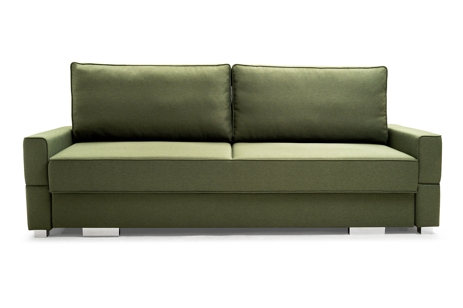 Dvoumístná pohovka SUZANA je čalouněná pohovka, jejíž barvy si lze vybrat z široké škály barev podle individuálních preferencí a vzhledu uspořádaného interiéru. Stylová pohovka stojí na chromových nožkách, které dodávají konstrukci nádech modernosti. Pohovka s bočnicemi je vybavena funkcí spaní, díky níž lze tento kus nábytku kdykoli rozložit - bude praktickým kusem nábytku pro přespání hostů i příležitostným lůžkem, pokud bude umístěna v obývacím pokoji. SUZANA je vybavena prostorným úložným prostorem na lůžkoviny, ve kterém jsou všechny přikrývky, peřiny a polštáře na jednom místě. Sedák a dva polštáře na opěradle jsou vyrobeny z vlnitých pružin v kombinaci s pěnou T-30 - použité materiály zajistí nábytku odpovídající pružnost. Sedadlo se pod uživatelem nepropadává, ani se na něm nevytvoří promáčkliny nebo deformace. Moderní pohovka SUZANA bude nejen pohodlným nábytkem do obývacího pokoje, ale také prvkem, který podtrhne nadčasový charakter uspořádání obývacího pokoje.