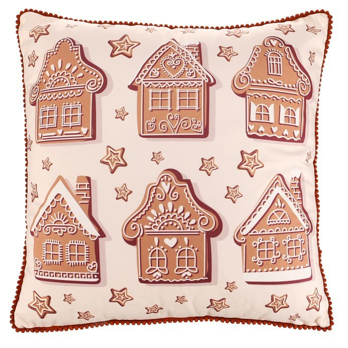 Dekorační vánoční polštář s kouzelným motivem perníkových domků a hvězdiček navodí sváteční atmosféru v každém interiéru. Sametově hebký povrch dodá pocit útulnosti, rozměr 45 × 45 cm je ideální pro pohovku i křeslo. Vyroben ze 100 % polyesteru, příjemný na dotek a snadno udržovatelný. Jen pozor, výplň je nepratelná, ale svrchní část lze sundat, je totiž na zip, a ta již pratelná je.