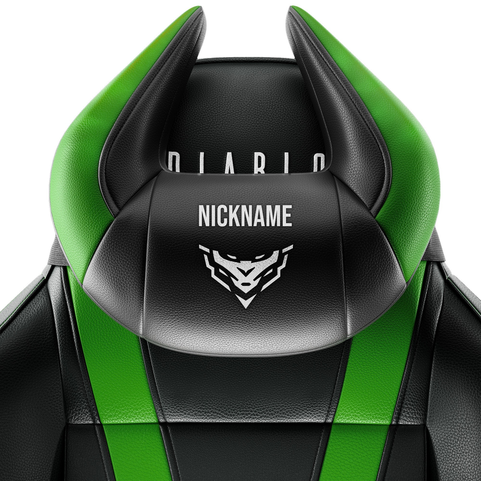Polštář opěrka hlavy Diablo X-Horn s personalizovanou výšivkou, černo-zelená