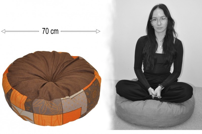 Velký sedací polštář plněný měkkou molitanovou drtí. | Průměr polštáře je 70 cm. Výška polštáře je 20 cm. Polštář je plněný molitanovou drtí, která zaručí příjemné sezení.