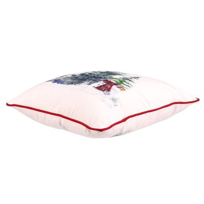 Sametový polštář s veselým vánočním motivem sněhuláka a stromků rozjasní každý zimní interiér. Bílý základ doplňuje jemný červený lem, který ladí se sváteční atmosférou. Potah je odnímatelný a lze ho prát na 30 °C, výplň není určena k praní. Rozměr 45 × 45 cm – ideální na pohovku, křeslo nebo postel.