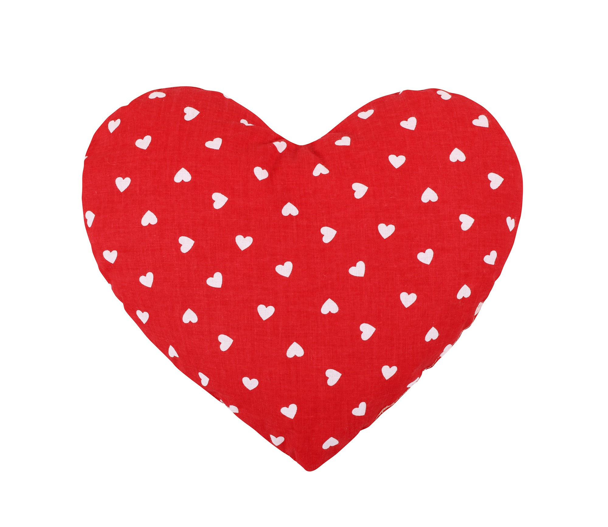Romantický polštářek ve tvaru srdce je krásným doplňkem, který vnese do interiéru lásku, pohodu a něžnou atmosféru. Červený podklad zdobí jemný vzor bílých srdíček, díky kterému polštář působí elegantně i hravě zároveň.