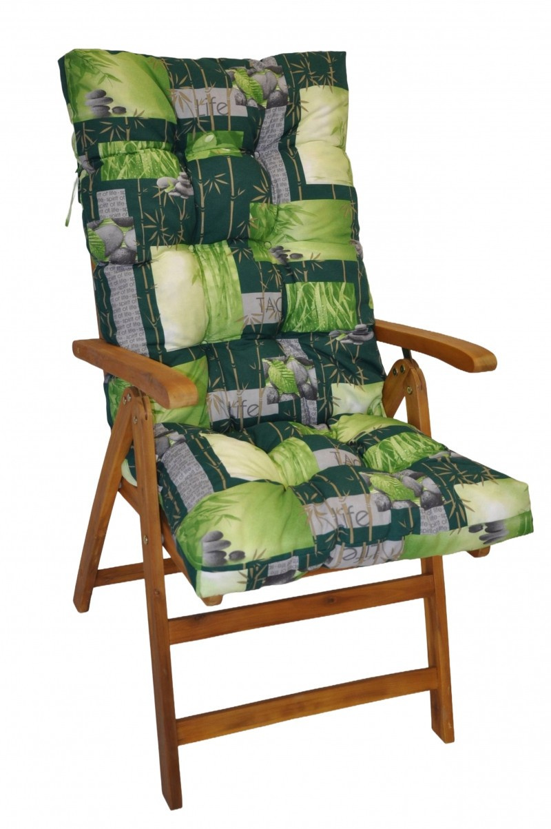Samostatný polstr na teakové zahradní křeslo s vysokým opěradlem a stavitelnou polohou opěradla. | Univerzální polstr na zahradní křeslo s vysokým opěradlem. Polstr je vhodný na různá zahradní křesla prodávaná na našem trhu. Šířka polstru je 50 cm. Celková délka polstru je 120 cm. Polstr je prošitý v místě dělení na sedací a opěradlovou část. Hloubka sedací části je 47 cm a výška opěradlové části je 73 cm. Polstr je plněný drceným molitanem. Pro výrobu polstru je použita kvalitní látka a standardem je vysoká kvalita zpracování. Polstr je vyrobený je v České republice z kvalitní látky a vyznačuje se vysokou kvalitou zpracování.