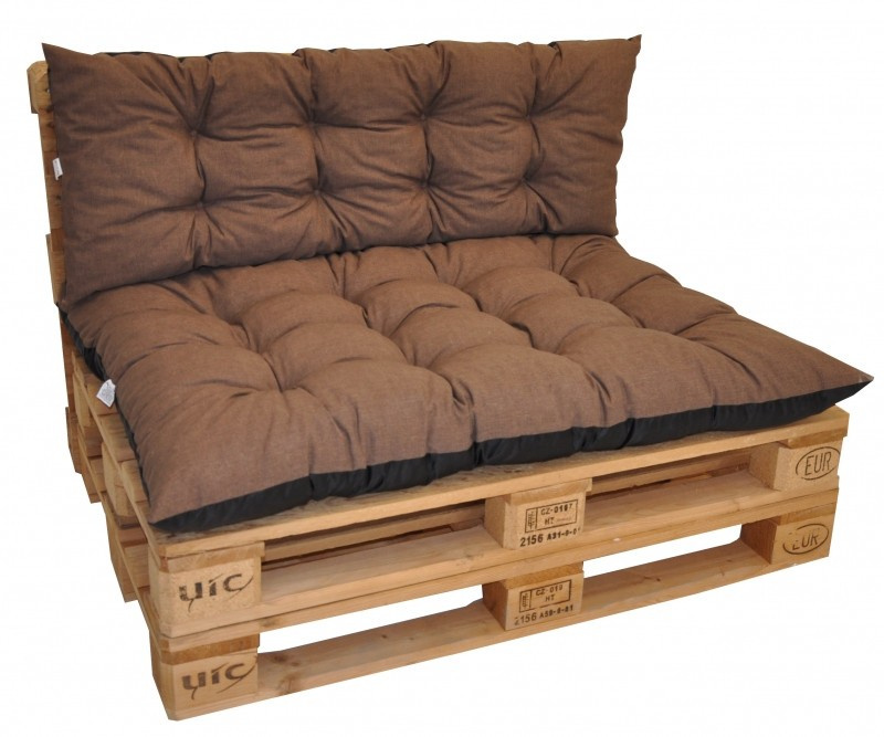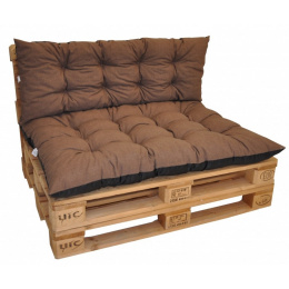 Souprava polstrů na paletové sezení pro 2 osoby. | Sada polstrů na paletové sezení. Sada polstrů obsahuje: - sedací polstr o velikosti 120x80 cm - opěradlový polstr o velikosti 120x40 cm Polstry jsou vyrobeny z velice kvalitní látky. Plněny jsou drceným molitanem. Spodní část polstrů je vyrobena z voděodolné látky. Polstry tak můžete použít například i na trávníku aniž by absorbovaly vlhkost, a pokud se zespod ušpiní, lehce je očistíte vlhkým hadříkem. Sedací polstr je prošitý na dvanácti místech, což zaručuje rovnoměrné rozložení náplně a tím i pohodlné sezení. Polstry jsou opatřeny tkaniceni pro lepší uchycení k paletám či jinému nábytku.