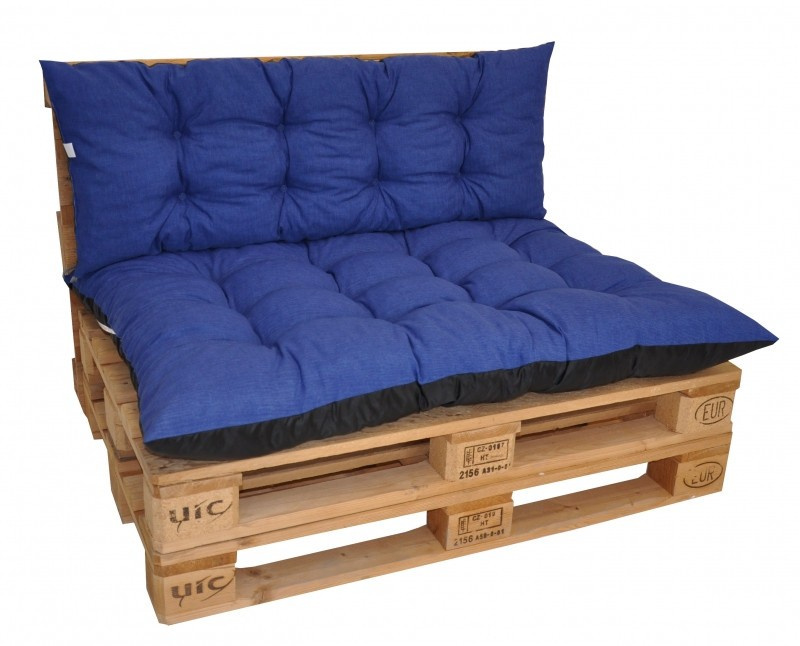 Souprava polstrů na paletové sezení pro 2 osoby. | Sada polstrů na paletové sezení. Sada polstrů obsahuje: - sedací polstr o velikosti 120x80 cm - opěradlový polstr o velikosti 120x40 cm Polstry jsou vyrobeny z velice kvalitní látky. Plněny jsou drceným molitanem. Spodní část polstrů je vyrobena z voděodolné látky. Polstry tak můžete použít například i na trávníku aniž by absorbovaly vlhkost, a pokud se zespod ušpiní, lehce je očistíte vlhkým hadříkem. Sedací polstr je prošitý na dvanácti místech, což zaručuje rovnoměrné rozložení náplně a tím i pohodlné sezení. Polstry jsou opatřeny tkaniceni pro lepší uchycení k paletám či jinému nábytku.