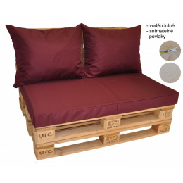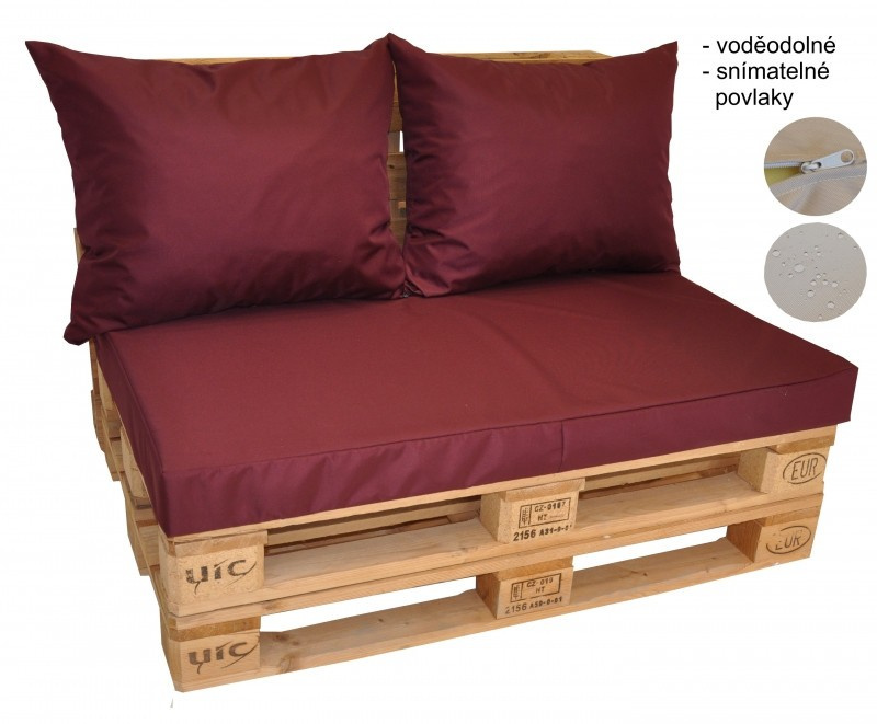 Sada polstrů na paletové sezení pro 2 osoby. | Sada polstrů na paletové sezení obsahuje: - sedací polstr o velikosti 120x80 cm z kvalitního deskového molitanu o síle 10 cm - 2 opěradlové polštáře o velikosti 60x50 cm Polstry jsou vyrobeny z kvalitní voděodolné látky Oxford 600D. Všechny povlaky paletových polstrů jsou snímatelné a zapínatelné na zip. Polstry na paletové sezení jsou vyrobeny v České republice.