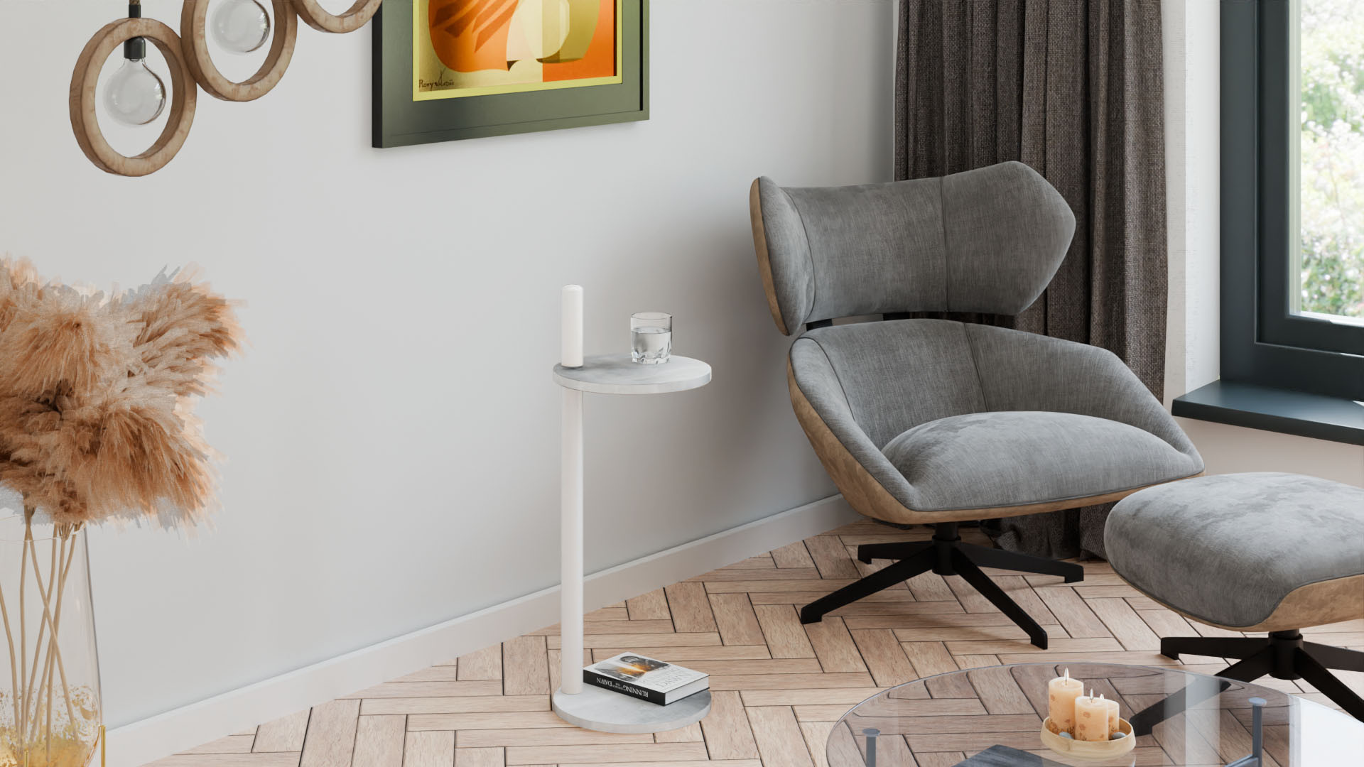 Pomocný stolek Claro kulatý průměr 30 cm - různé barvy na výběr - Světlý Beton, Matná Bílá