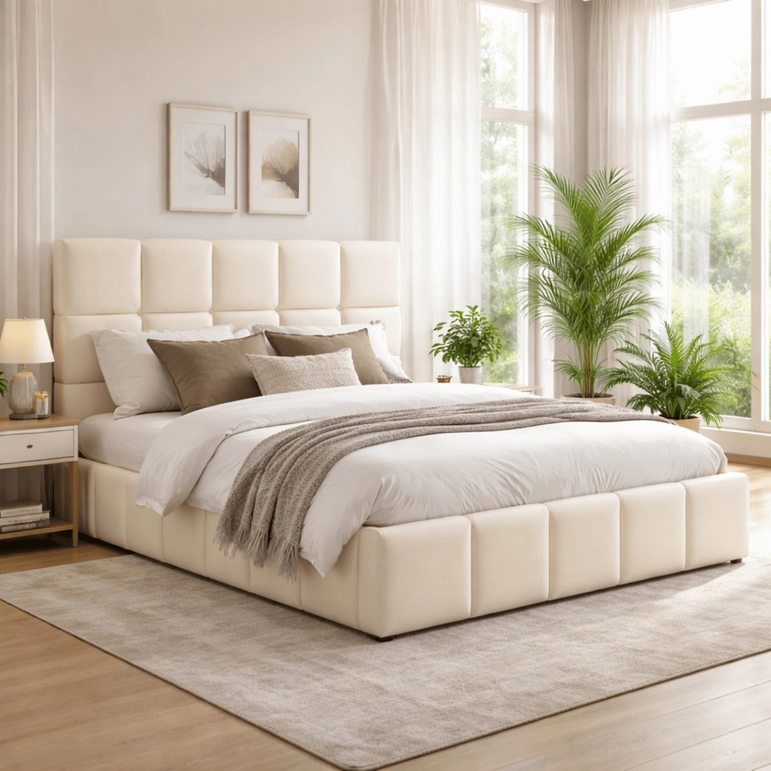 Postel 140x200 MURCJA s Úložným Prostorem Krémová Sametová