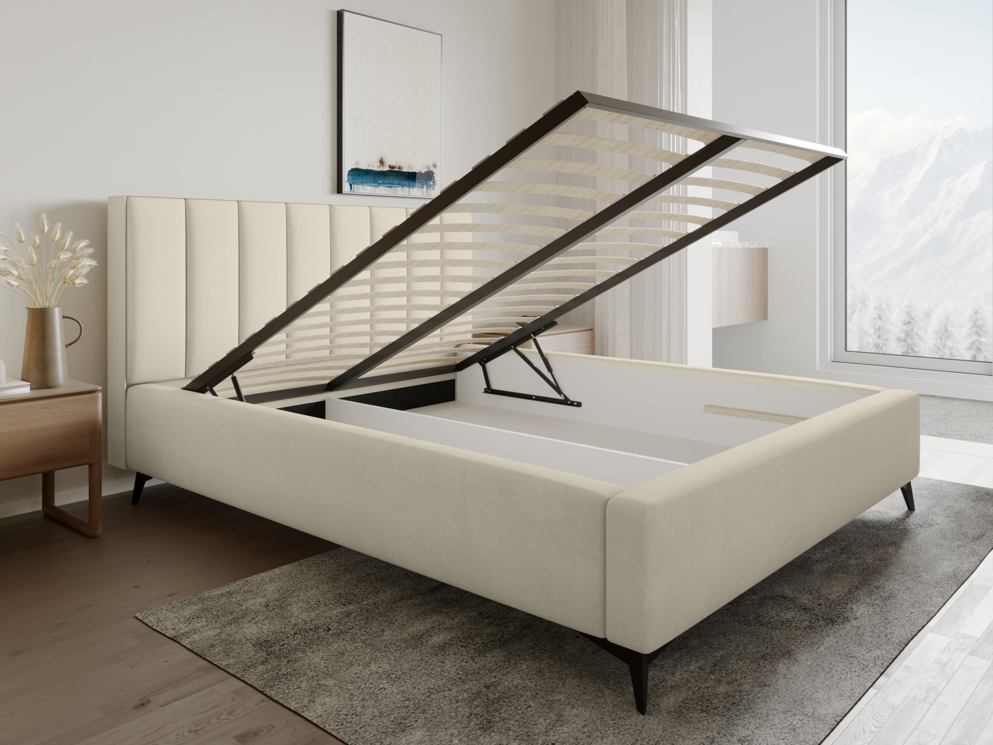 - Čalouněné čelo: Měkké čalouněné čelo postele poskytuje pohodlnou oporu při čtení knihy nebo sledování televize.