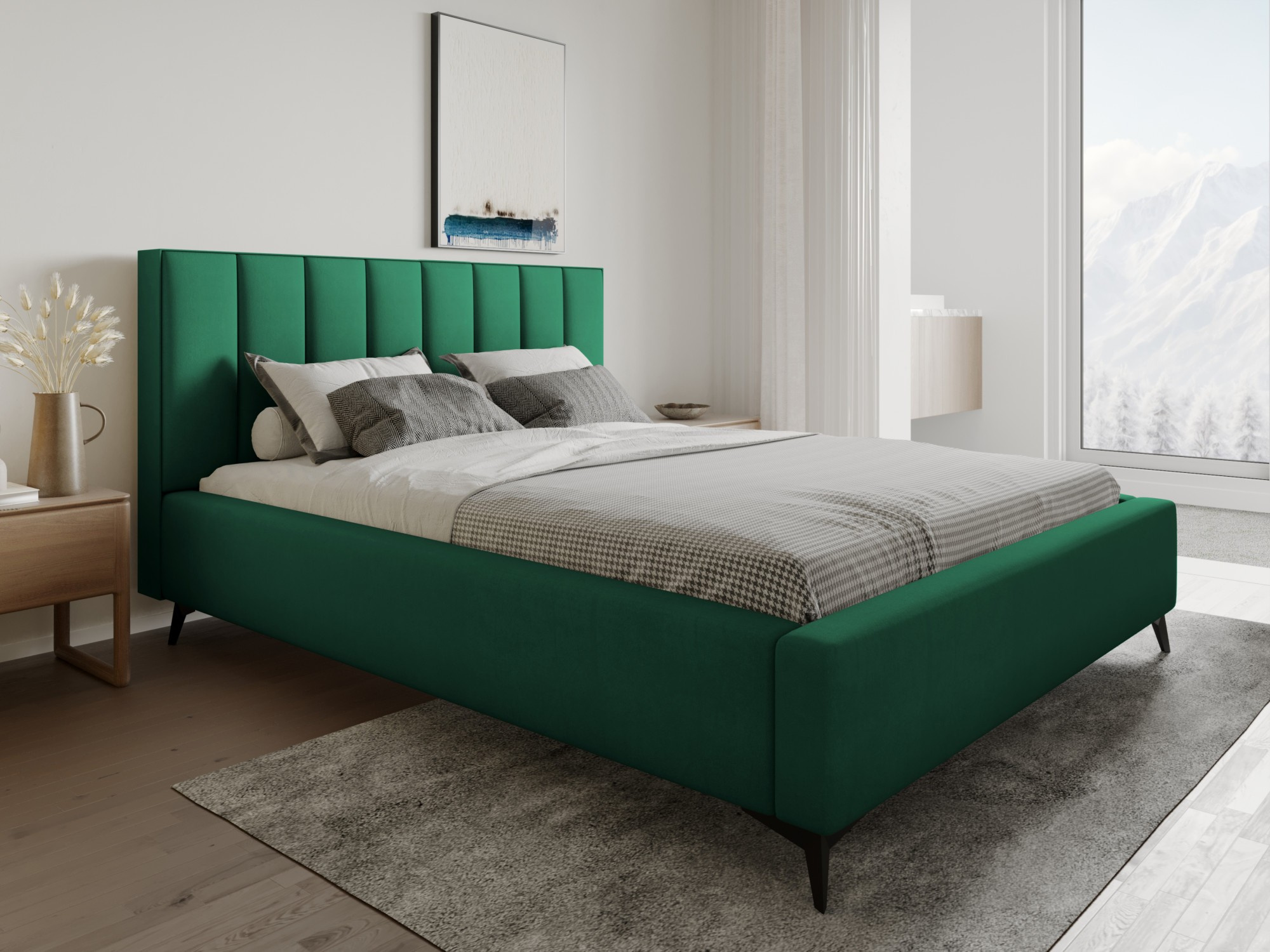 Čelo postele: Elegantní čelo postele nejenže skvěle vypadá, ale také poskytuje pohodlnou oporu při čtení nebo sledování televize. Jeho měkké polstrování zaručuje maximální komfort.