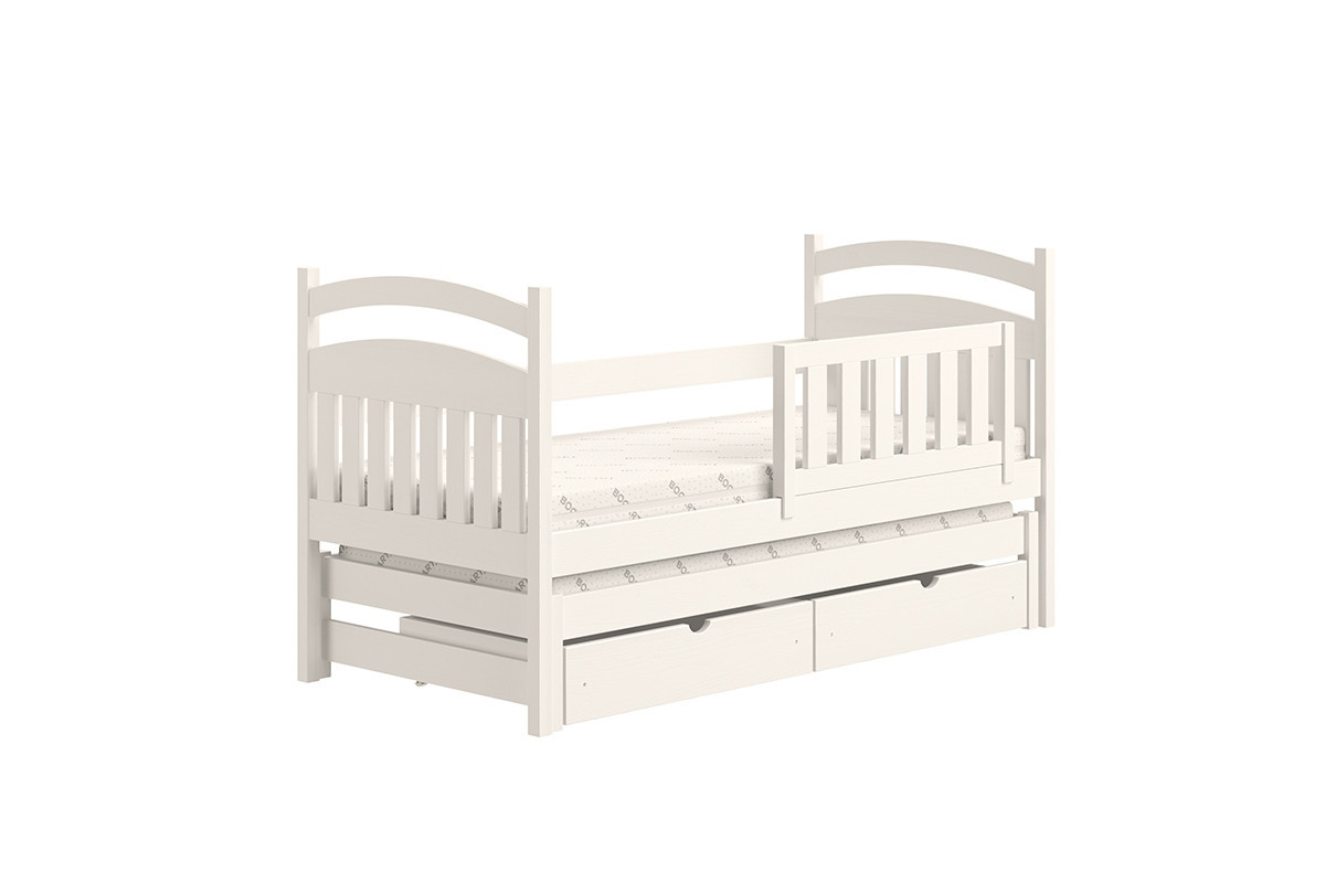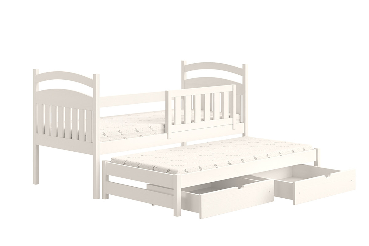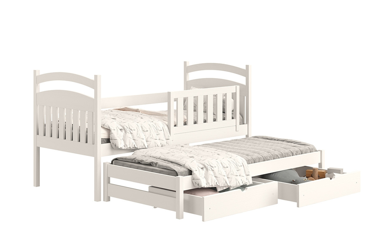 postel dětské přízemní výsuvná Amely - Barva Bílý, rozměr 80x180, šířka: 87, výška: 102, hloubka: 187, Rozměr pro matrace: 80x180, Montáž: . Funkcjonalne łóżeczko piętrowe, wykonane z drewna, z pojemnymi szufladami oraz wezgłowiami w formia tablicy suchościeralnej w kolorze białym.