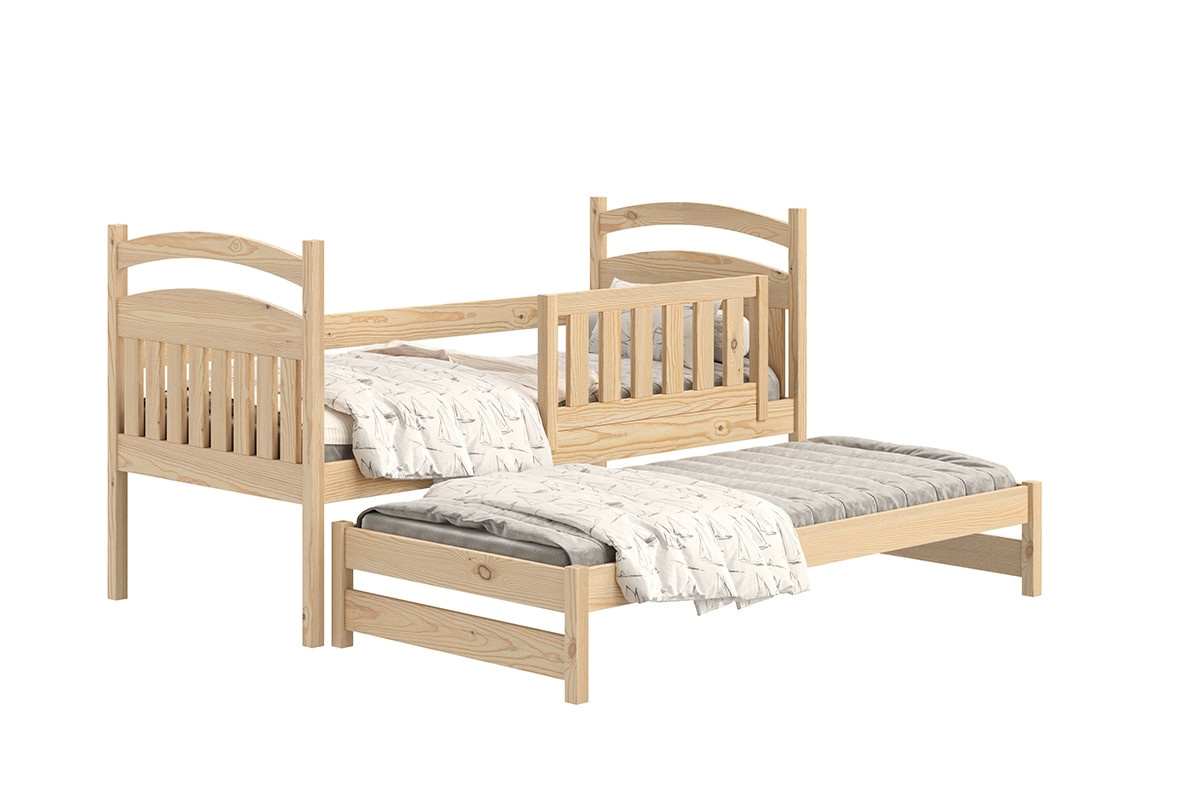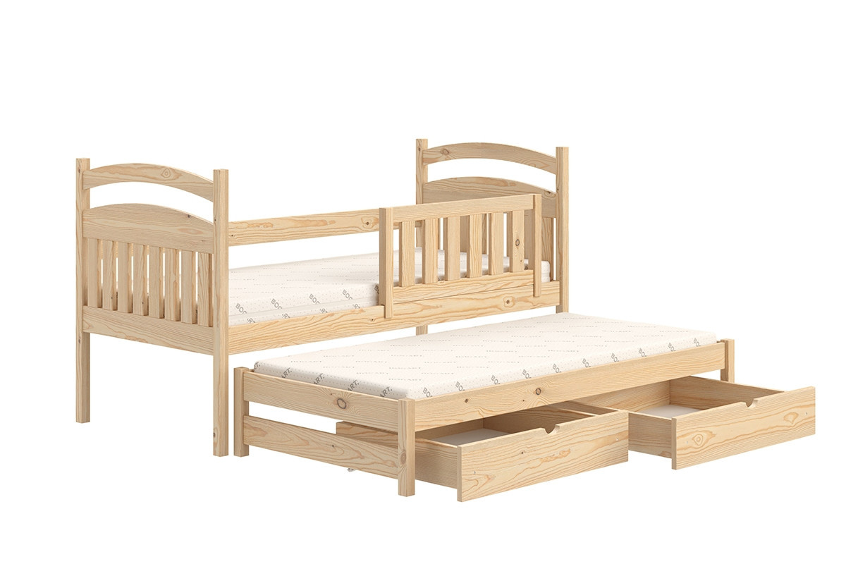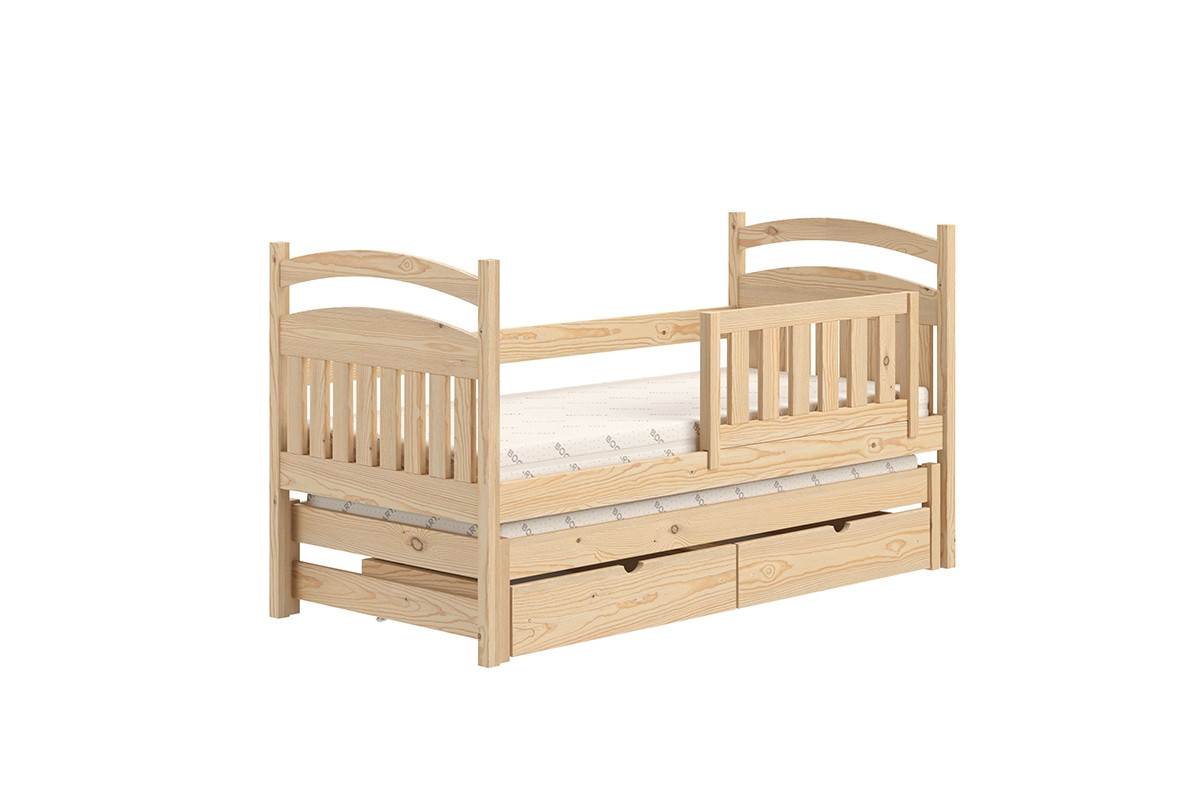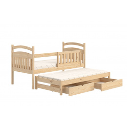 postel dětské přízemní výsuvná Amely - Barva Borovice, rozměr 80x180, šířka: 87, výška: 102, hloubka: 187, Rozměr pro matrace: 80x180, Montáž: . Funkcjonalne łóżeczko piętrowe, wykonane z drewna, z pojemnymi szufladami oraz wezgłowiami w formia tablicy suchościeralnej w kolorze białym.