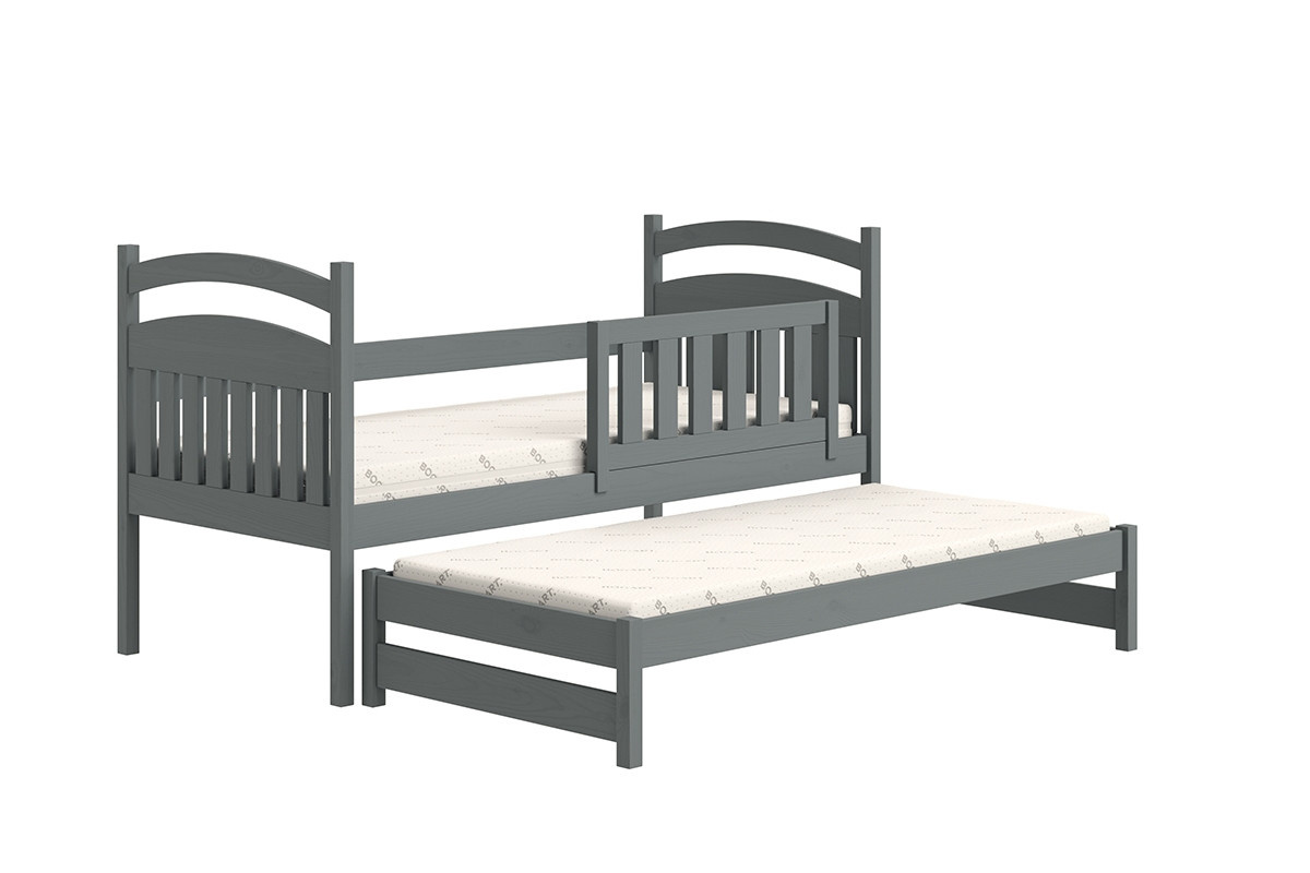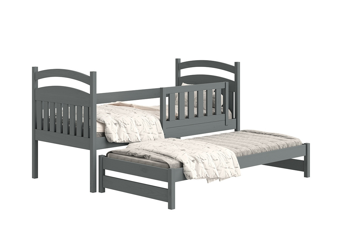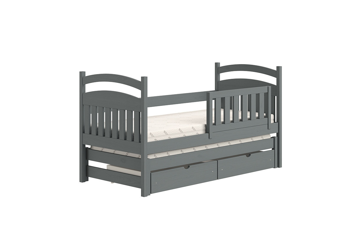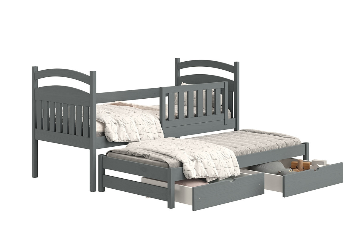 postel dětské přízemní výsuvná Amely - Barva grafit, rozměr 80x180, šířka: 87, výška: 102, hloubka: 187, Rozměr pro matrace: 80x180, Montáž: . Funkcjonalne łóżeczko piętrowe, wykonane z drewna, z pojemnymi szufladami oraz wezgłowiami w formia tablicy suchościeralnej w kolorze białym.