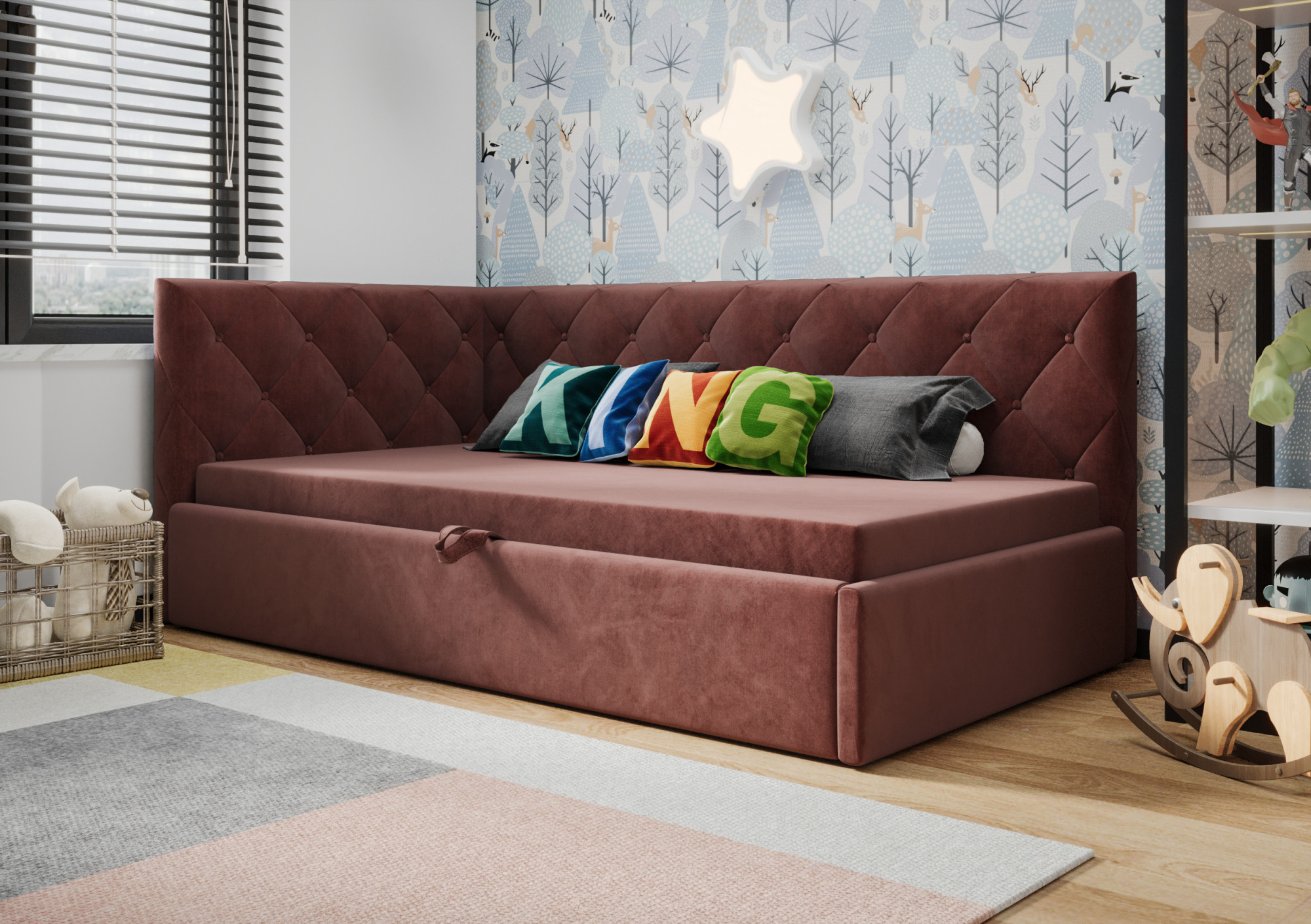 Čalouněná postel ELZA je naše nabídka jednolůžkového modelu. Vytvořen s ohledem na nejmladší - skvěle se hodí také do pokoje pro mládež, hotelového pokoje nebo penzionu. Široký výběr tkanin a barev umožní přizpůsobit nábytek interiéru, který zařizujete. Již dnes se postarejte o spánek svého dítěte s značkou Meble Górecki.