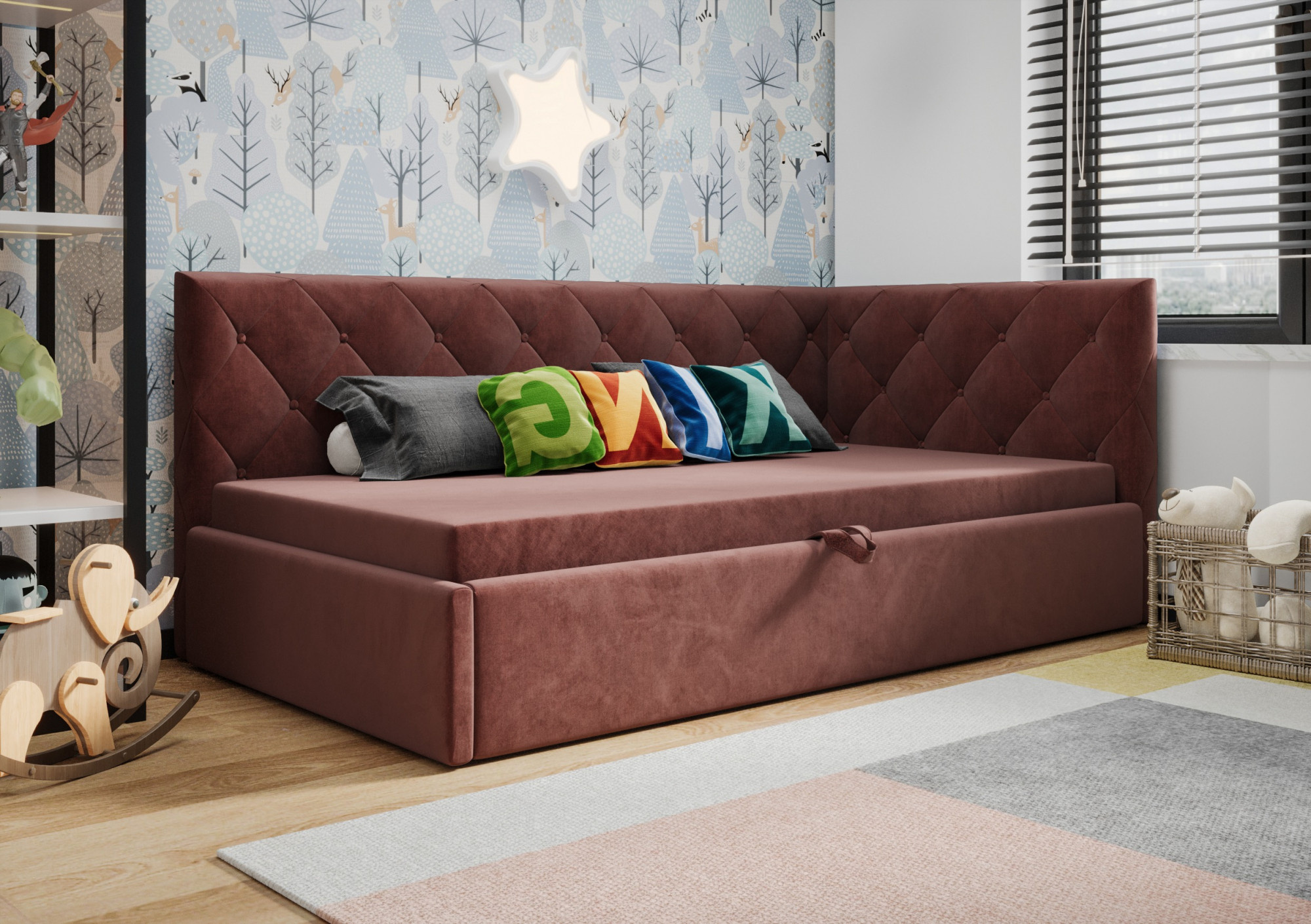 Čalouněná postel ELZA je naše nabídka jednolůžkového modelu. Vytvořen s ohledem na nejmladší - skvěle se hodí také do pokoje pro mládež, hotelového pokoje nebo penzionu. Široký výběr tkanin a barev umožní přizpůsobit nábytek interiéru, který zařizujete. Již dnes se postarejte o spánek svého dítěte s značkou Meble Górecki.