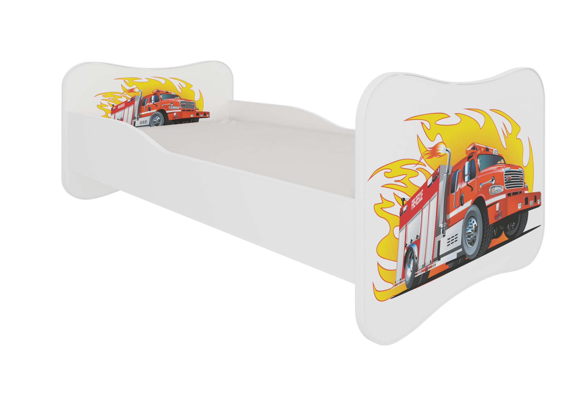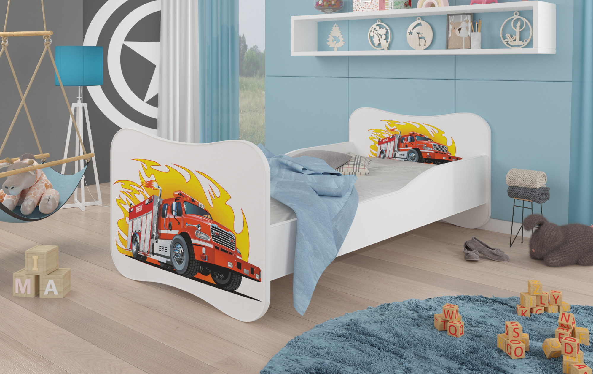 Dětská postel GONZALO s matrací, 140x70 cm, Bílá/Fire Truck