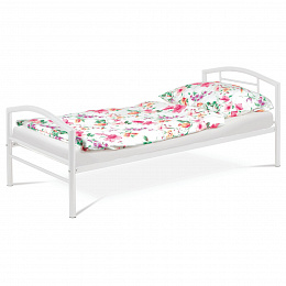 Jednolůžková postel s rozměry lůžka 90 x 200 cm je vyrobena z pevného kovu v bílém lesklém provedení, které snadno zapadne do různých interiérů. Kovová konstrukce zajišťuje stabilitu a dlouhou životnost, zatímco jednoduchý design s obloukovými čely přináší decentní estetiku vhodnou do ložnic i pokojů pro hosty. Postel je navržena tak, aby byla kompatibilní s běžnými matracemi o uvedených rozměrech. Díky své pevné stavbě poskytuje spolehlivou oporu pro pohodlný spánek a snadnou údržbu.