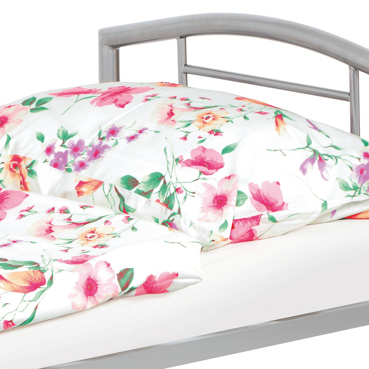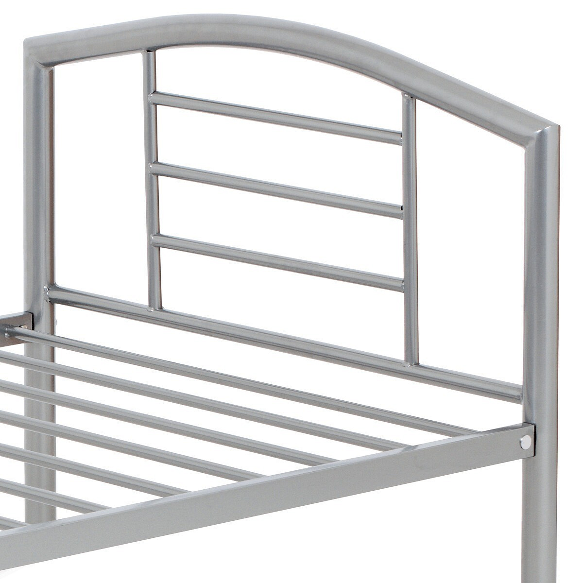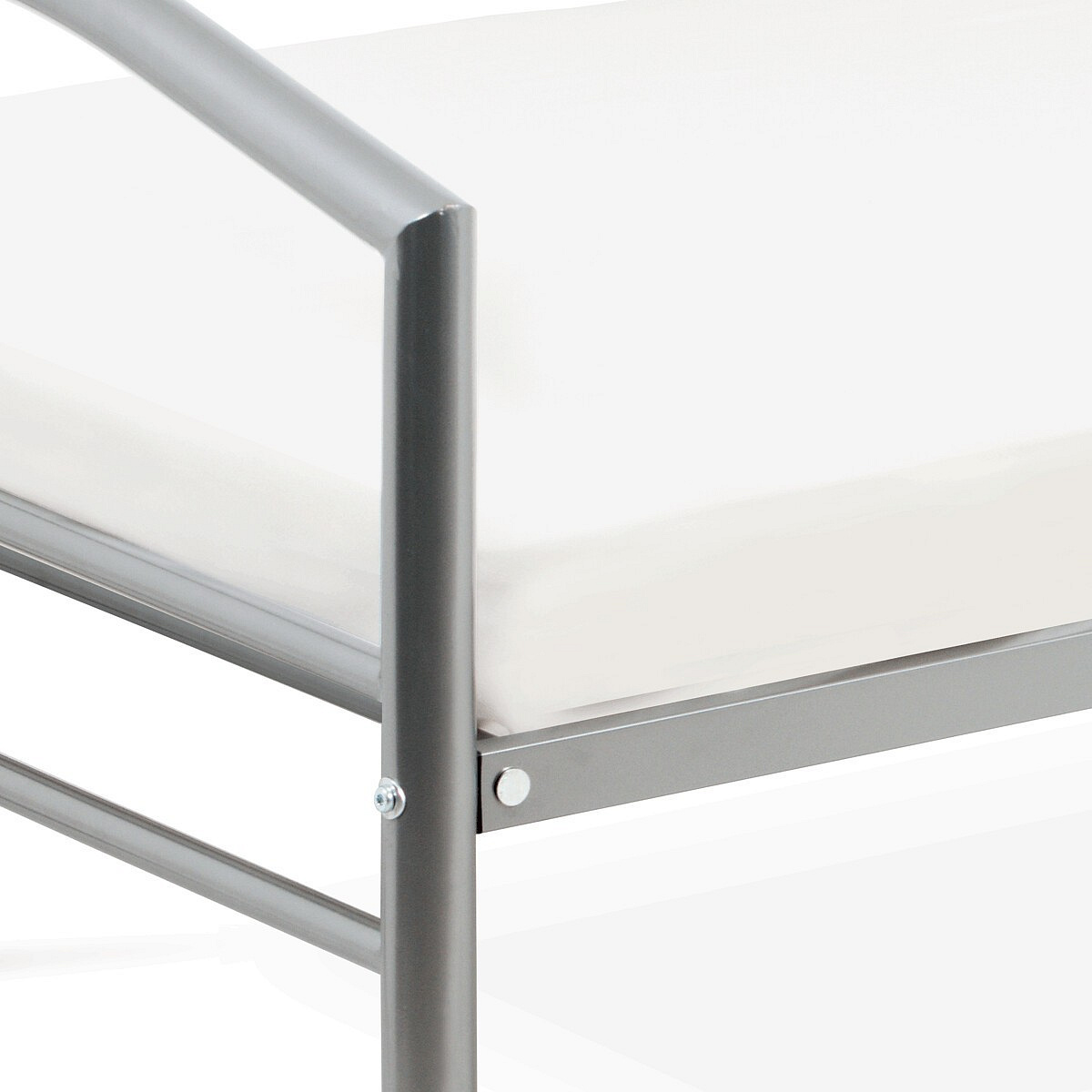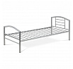 Jednolůžková postel o rozměru 90x200 cm v šedém matném provedení je vyrobena z pevného kovu, který zajišťuje stabilitu a dlouhou životnost. Rám postele tvoří jednoduché, ale pevné kovové profily s obloukově tvarovanými čely, která dodávají lehkost a moderní vzhled. Ložná plocha je tvořena kovovými latěmi, které poskytují dostatečnou oporu matraci a zároveň umožňují cirkulaci vzduchu. Povrchová úprava v matném stříbrném lesku je odolná vůči poškrábání a snadno se udržuje. Postel je vhodná pro standardní jednolůžkové matrace a díky své konstrukci je ideální do studentských pokojů, hostinských prostor nebo menších ložnic.