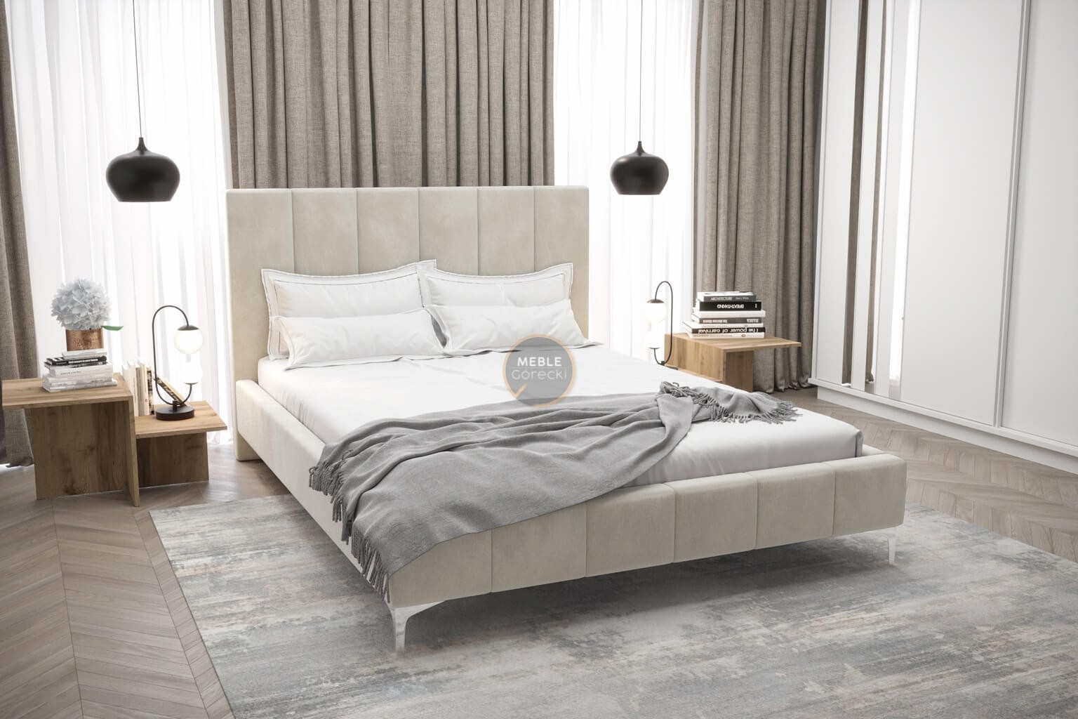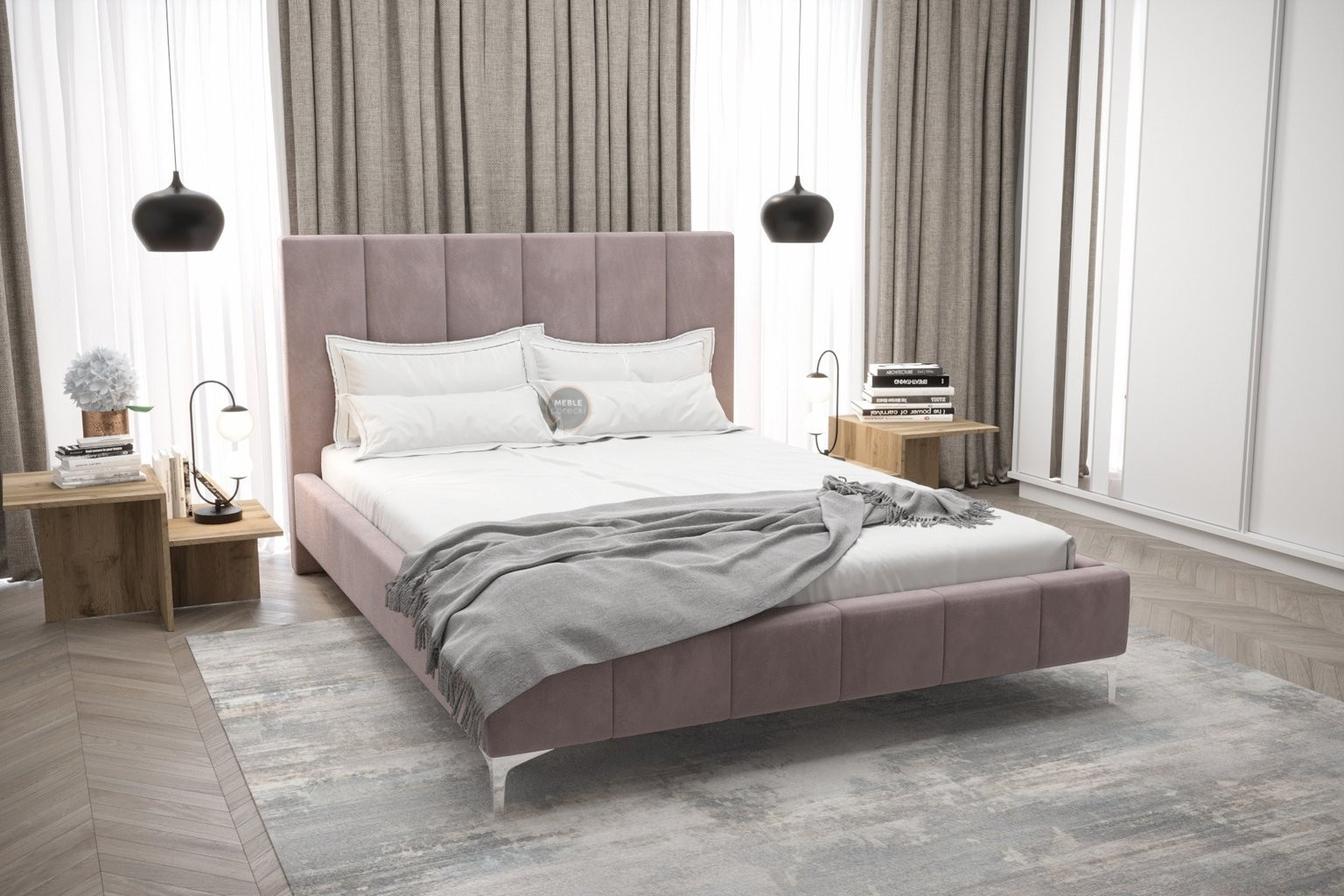 Postel Luna je ideálním modelem pro fanoušky stylu glamour. Celkový dojem doplňuje ozdobné prošívané čelo postele. Stojí za to věnovat pozornost detailům v podobě vysokých kovových nožek, které dodávají styl a lehkost.