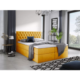 Velurová kontinentální postel 180 × 200 — MARGO Margo je elegantní kontinentální postel, která promění vaši ložnici. Čalouněné, prošívané čelo postele mu dodává sofistikovaný charakter, zatímco praktické úložné prostory a pohodlná matrace zajišťují každodenní komfort. Srdcem soupravy je matrace střední tvrdosti založená na bonellových pružinách a vrstvě pěny – zaručuje správnou podporu těla a pohodlný spánek. Pro náročnější je k dispozici verze s taštičkovými pružinami, které pracují nezávisle a snižují přenos vibrací. Volitelný topper (vrchní matrace) dodatečně zvyšuje pocit měkkosti a přizpůsobení. Dvě prostorné úložné prostory na ložní prádlo s automaty usnadňují udržování pořádku a zajišťují snadný přístup k uloženým věcem. Široká škála čalounických látek umožňuje přizpůsobit postel interiéru. Vlastnosti produktu dva velké úložné prostory pod matrací – s automatickým mechanismem pro snadné otevírání, standardní matrace: vysoce elastická pěna + bonellové pružiny, za příplatek kapsové pružiny místo bonellových, čalouněné, prošívané čelo postele – elegantní prvek v ložnici, rám z masivního dřeva a dřevotřísky – stabilita a trvanlivost, zadní část čela postele v černém wigofilu – estetická technická tkanina, černé nožky z plastu – bezpečné pro podlahy, snadná montáž – kovové spoje umožňují rychlé a intuitivní sestavení postele. Rozměry postele plocha na spaní: 180 × 200 cm, šířka: 182 cm, hloubka: 208 cm, výška čela: 105 cm, výška bez topperu: 45 cm, výška s topperem: 50 cm, tloušťka čela: 7 cm, *Všechny rozměry jsou uváděny s tolerancí +/- 3 cm