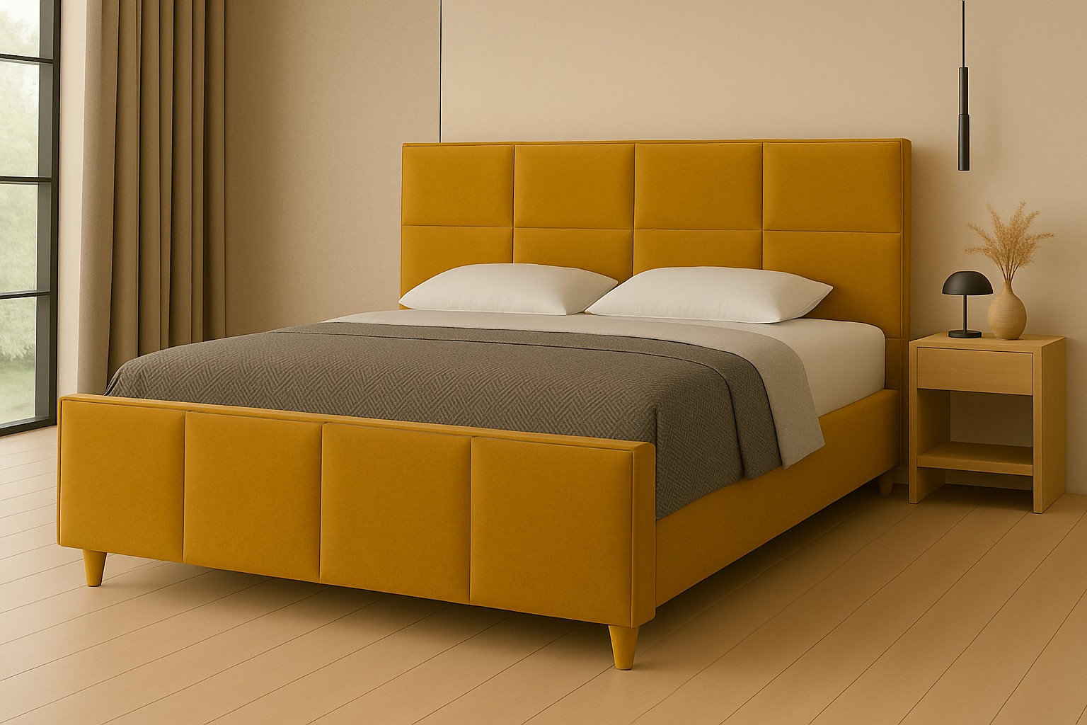 Elegantní čelo: Čelo postele je nejen estetickým prvkem, ale také praktickým doplňkem. Poskytuje oporu při čtení nebo sledování televize v posteli.
