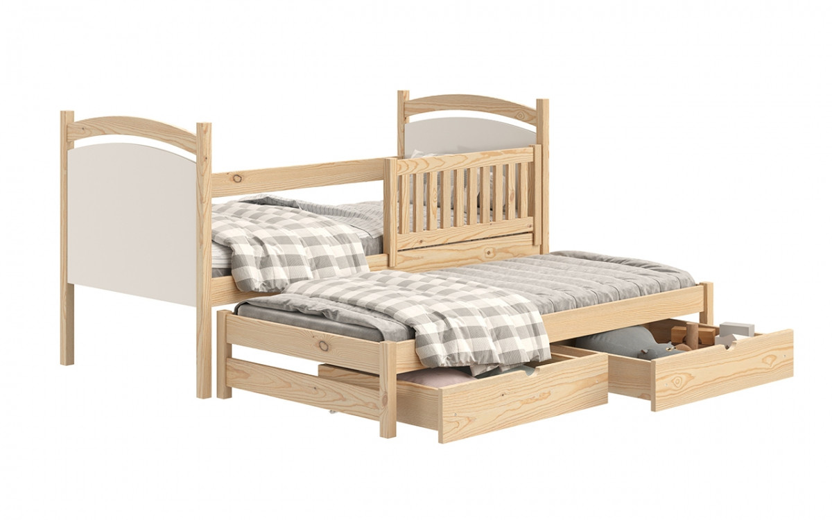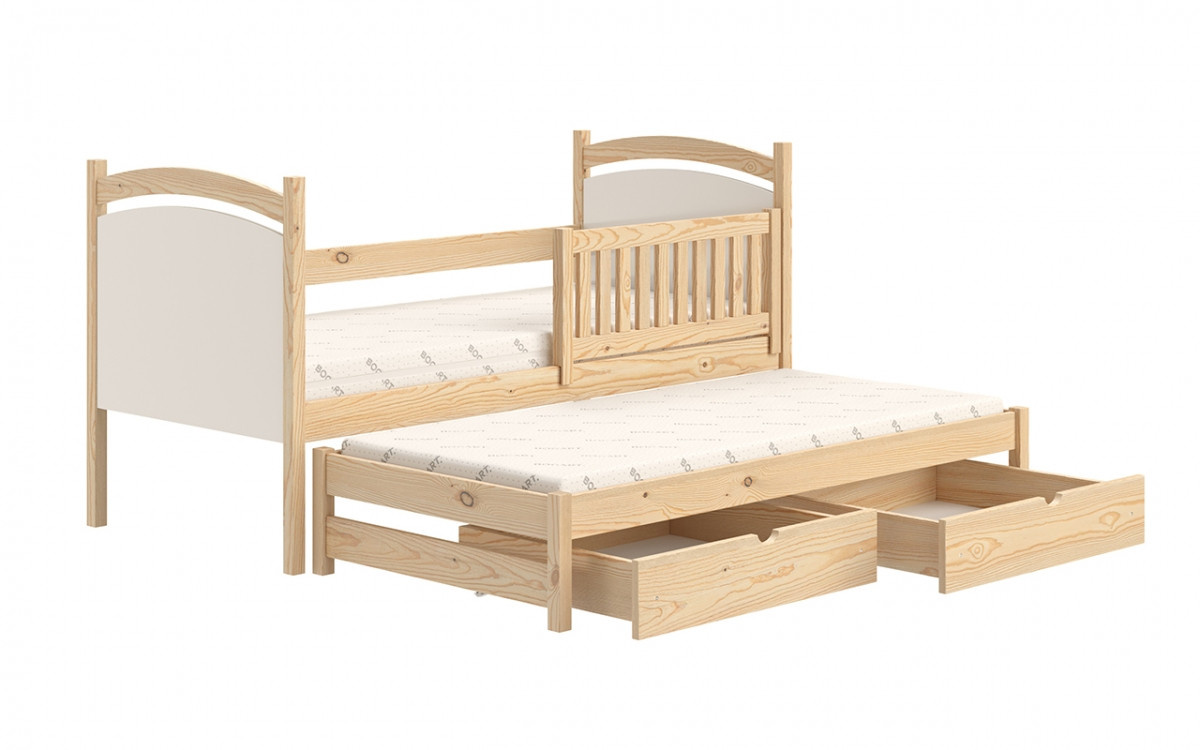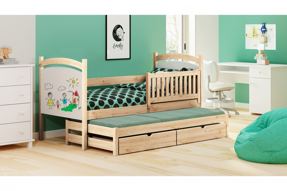 postel přízemní výsuvná s tabulí na suché mazání Amely - Barva Borovice, rozměr 80x180, šířka: 87, výška: 102, hloubka: 187, Rozměr pro matrace: 80x180 , Montáž: . Funkcjonalne łóżeczko piętrowe, wykonane z drewna, z pojemnymi szufladami oraz wezgłowiami w formia tablicy suchościeralnej w kolorze białym.