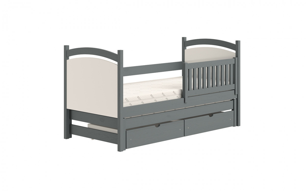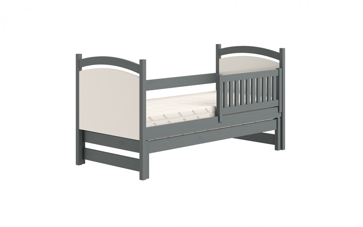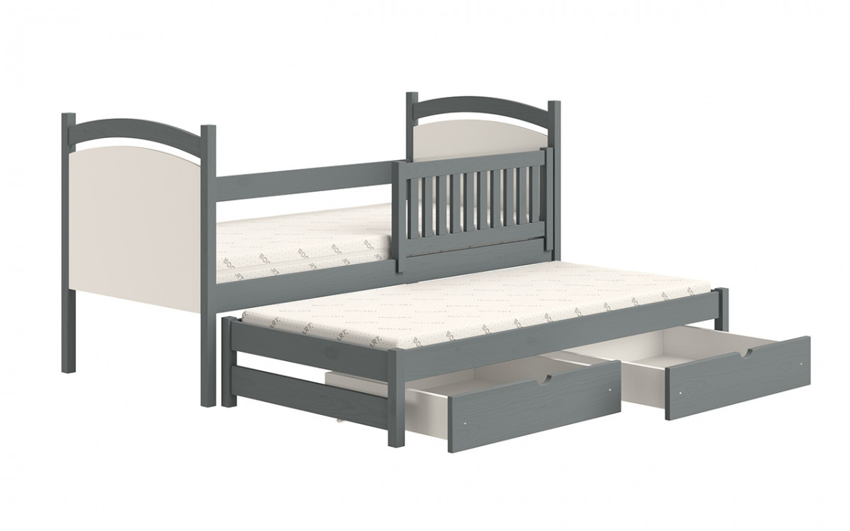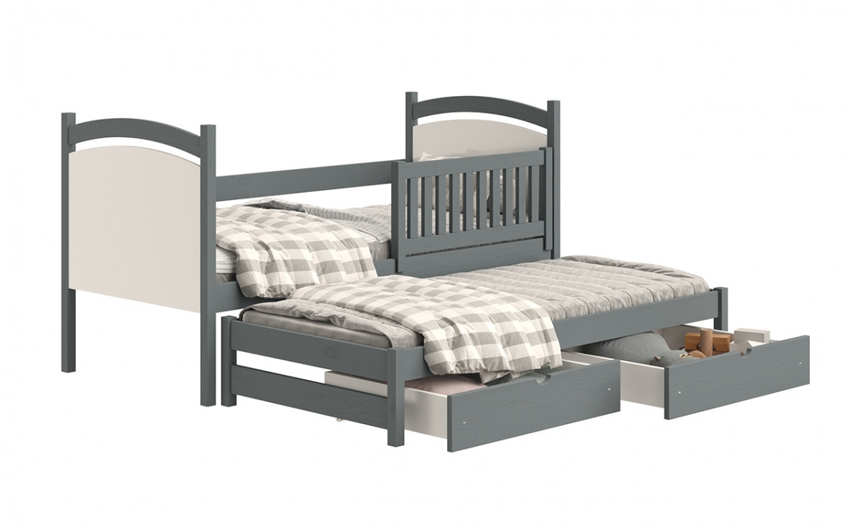 postel přízemní výsuvná s tabulí na suché mazání Amely - Barva grafit, rozměr 80x180 , šířka: 87, výška: 102, hloubka: 187, Rozměr pro matrace: 80x180 , Montáž: . Funkcjonalne łóżeczko piętrowe, wykonane z drewna, z pojemnymi szufladami oraz wezgłowiami w formia tablicy suchościeralnej w kolorze białym.