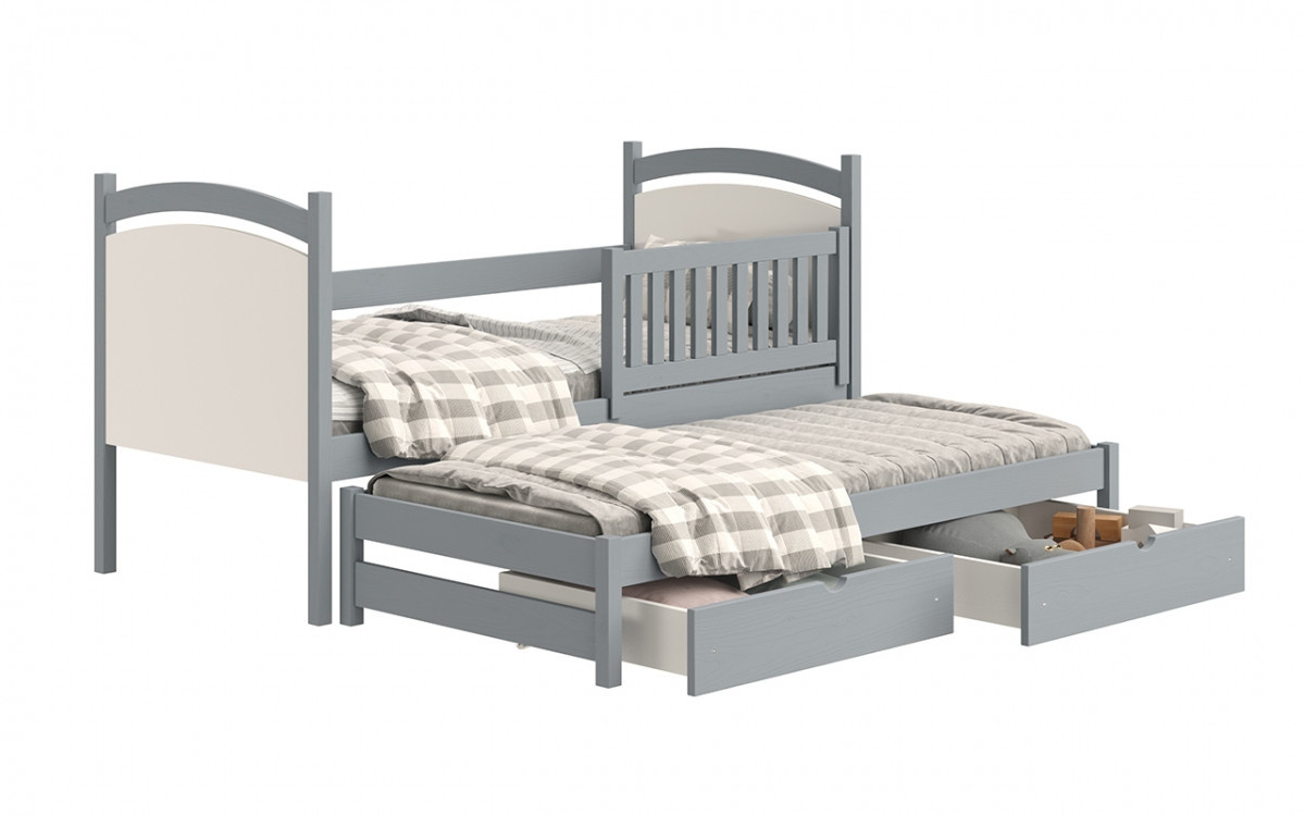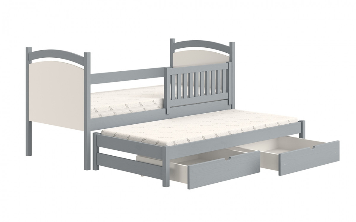 postel přízemní výsuvná s tabulí na suché mazání Amely - Barva šedý, rozměr 80x180, šířka: 87, výška: 102, hloubka: 187, Rozměr pro matrace: 80x180 , Montáž: . Funkcjonalne łóżeczko piętrowe, wykonane z drewna, z pojemnymi szufladami oraz wezgłowiami w formia tablicy suchościeralnej w kolorze białym.
