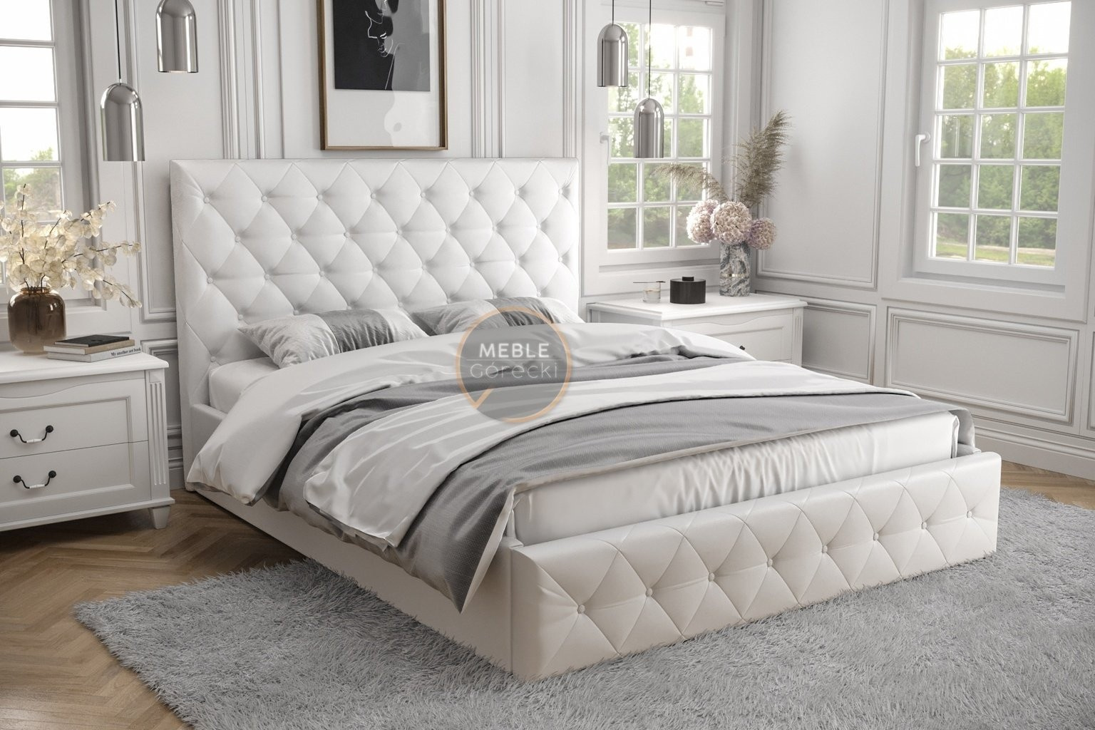 Postel ROMA - 160x200, Kovová na plynových zvedácích, Bílá eko kůže