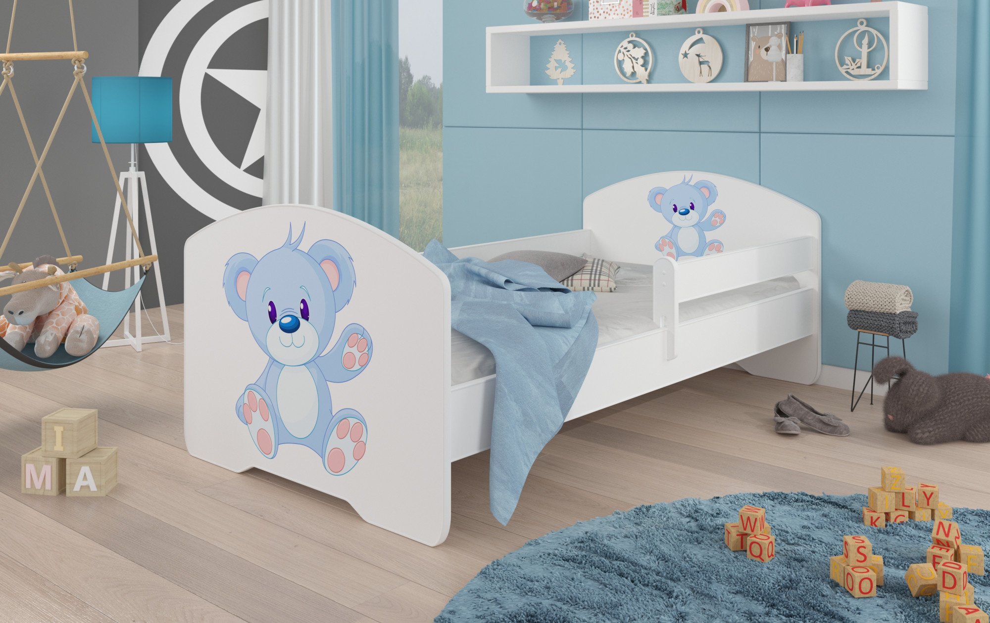 Postel s matrací a zábranou PEPE BLUE BEAR 140x70 Bílá