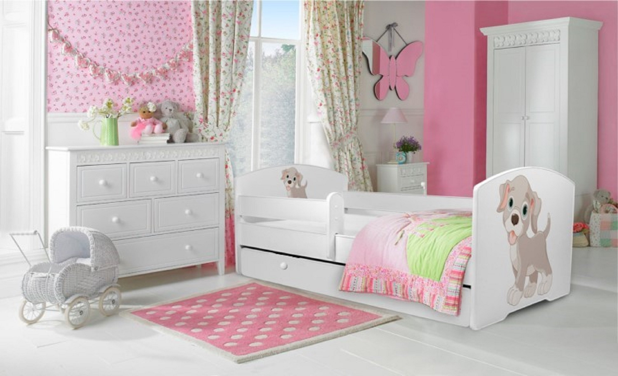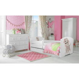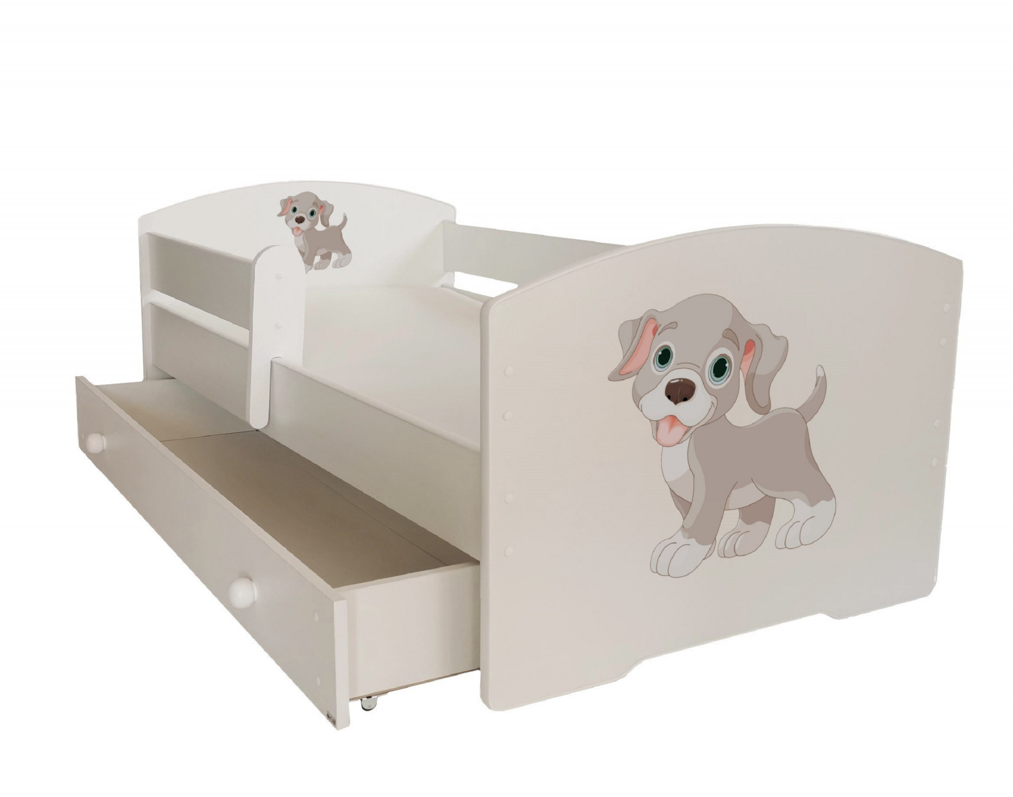 Postel s matrací, zábranou a šuplíkem PEPE DOG 140x70 Bílá