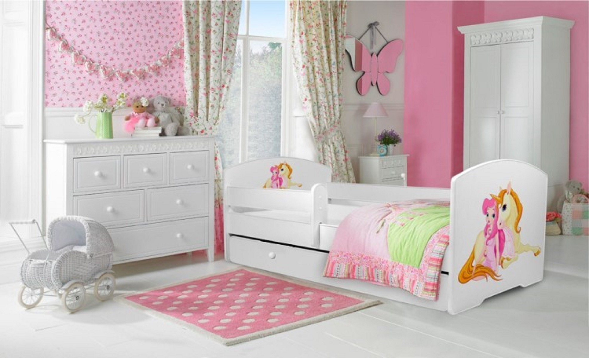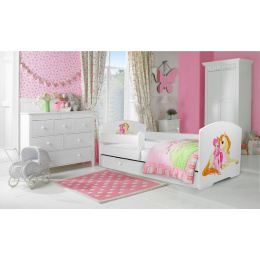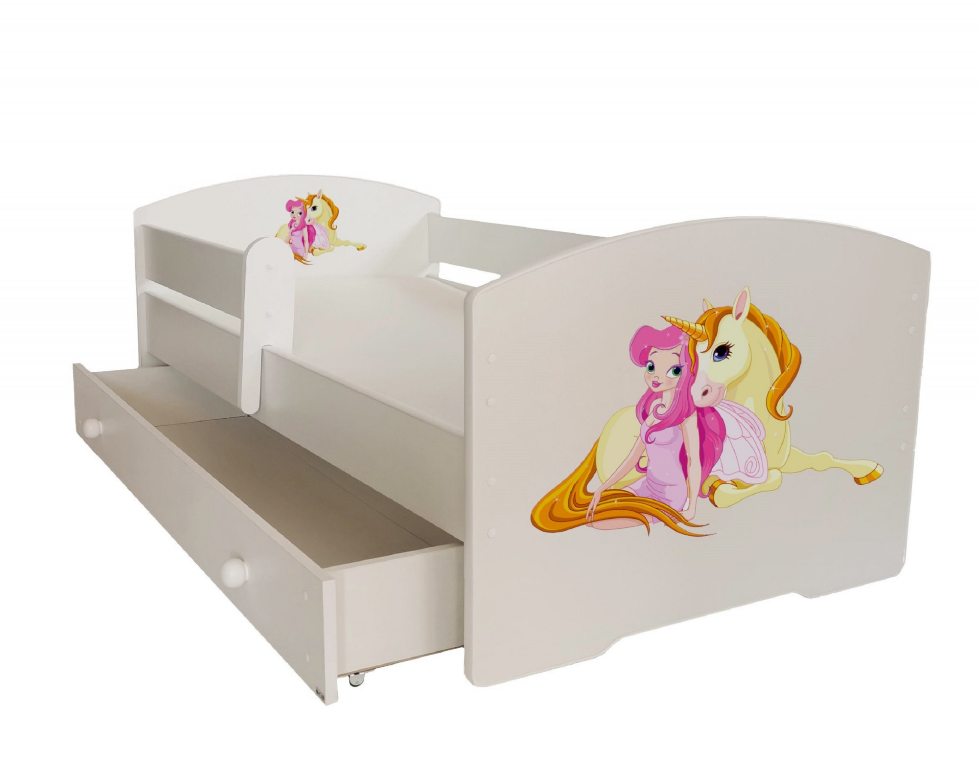 Postel s matrací, zábranou a šuplíkem PEPE GIRL WITH UNICORN 140x70 Bílá