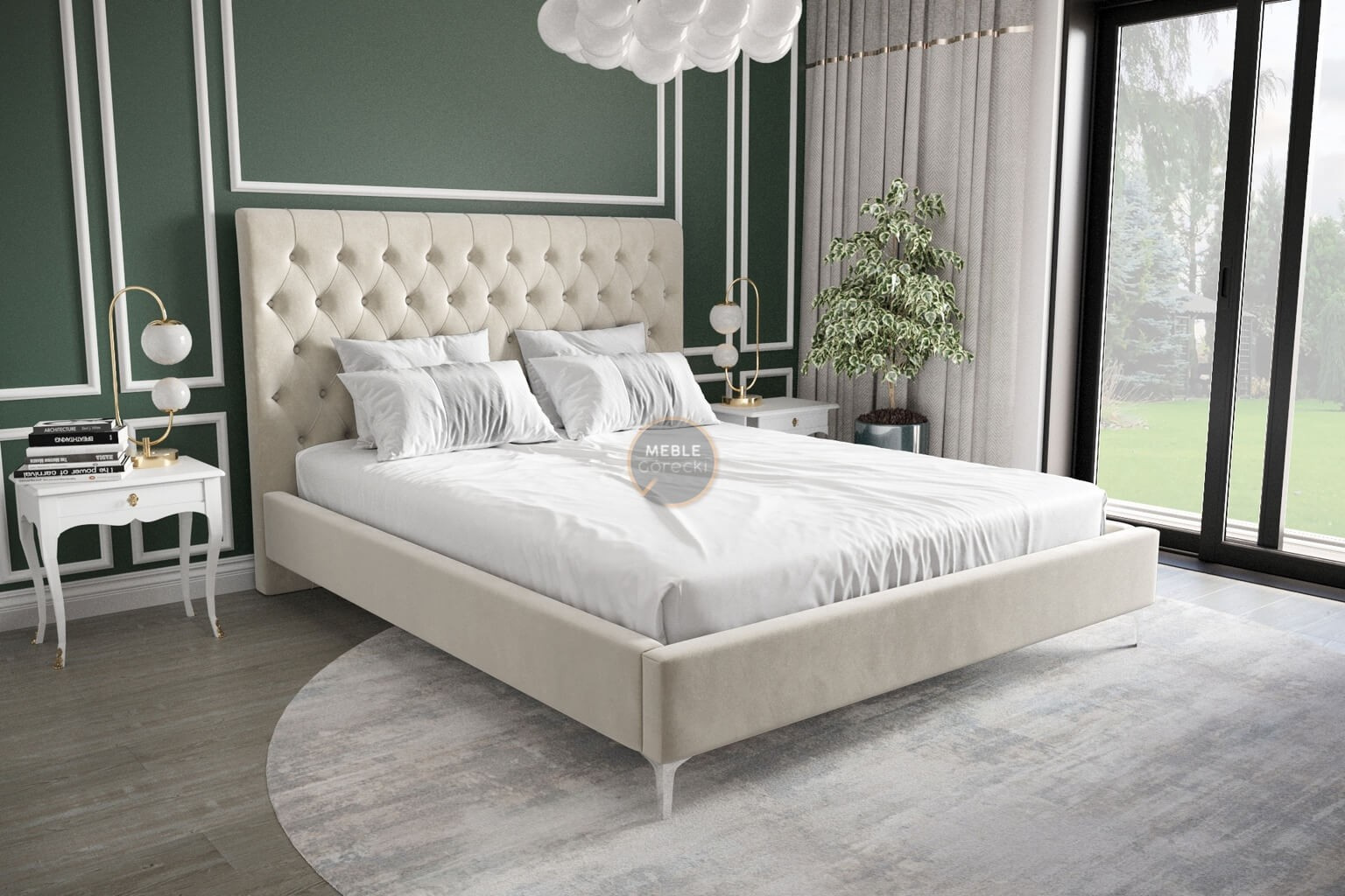Čalouněná postel Valentino je ideálním modelem pro fanoušky stylu glamour. Celkový dojem doplňuje ozdobné prošívané čelo postele. Stojí za to věnovat pozornost detailům v podobě vysokých kovových nožek, které dodávají styl a lehkost.