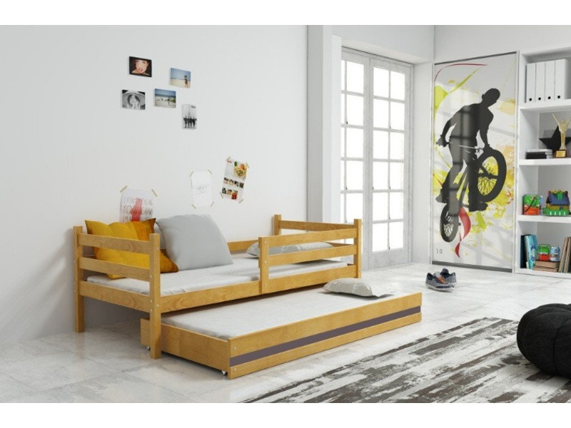 Postel z masivu pro 2 děti ERYK 2 - Olše/Grafit