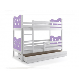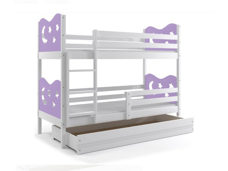 Postel z masivu pro 2 děti MAX 2 - Bílá/Fialová