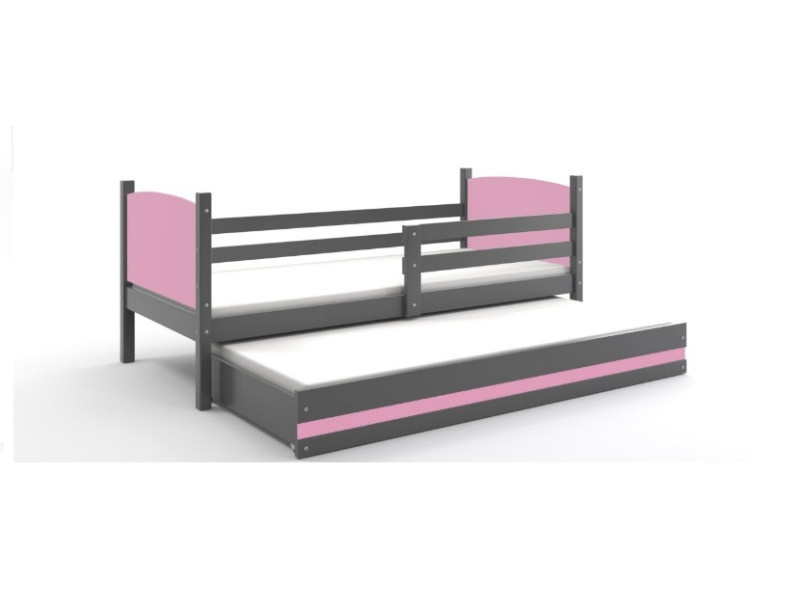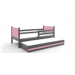 Postel z masivu pro 2 děti TAMI 2 - Grafit/Růžová