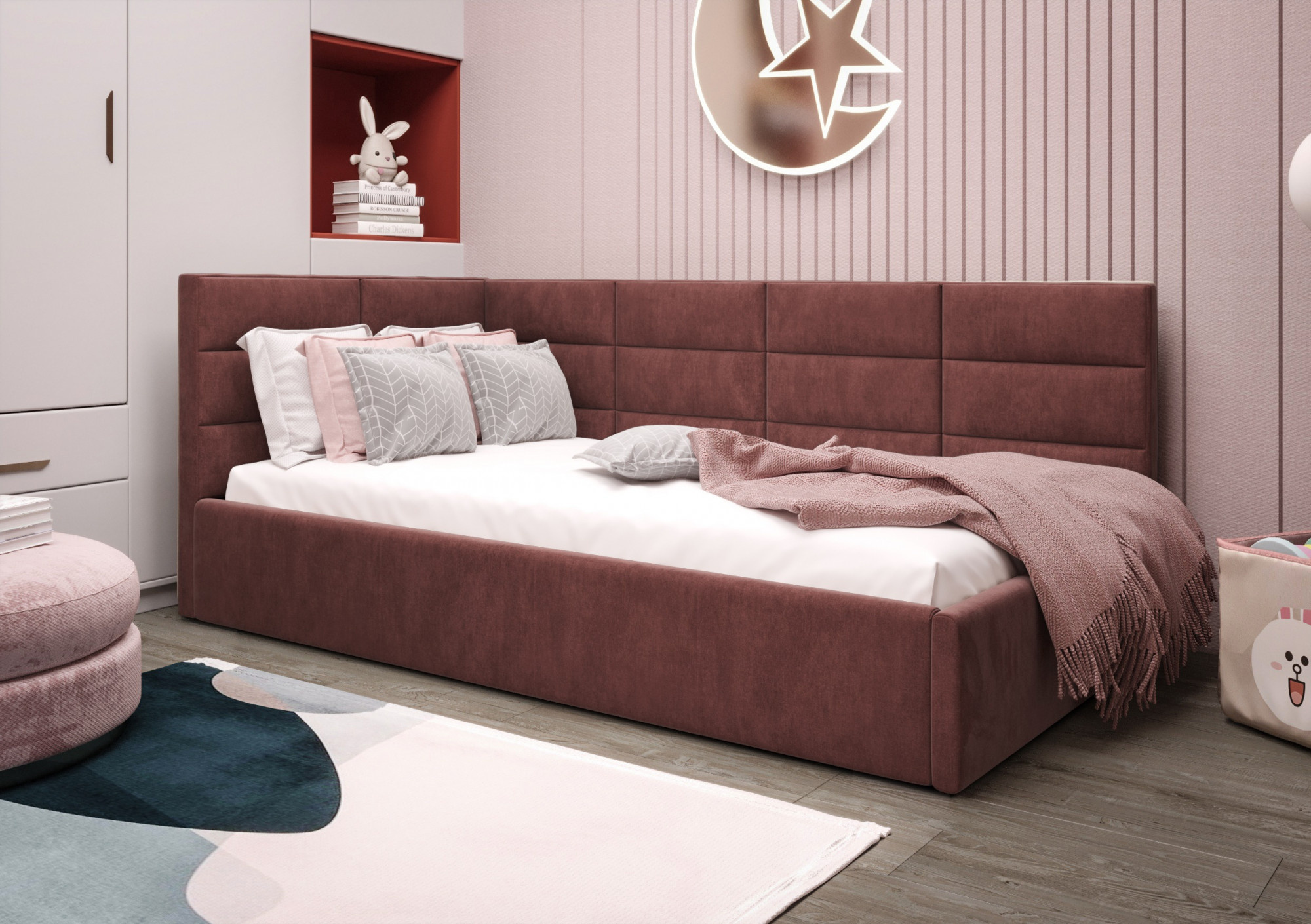 Čalouněná postel ZAZU je naším návrhem modelu pro jednu osobu. Vytvořen s ohledem na nejmladší – skvěle se uplatní také v pokoji pro mládež, hotelovém nebo penzionovém pokoji. Široký výběr tkanin a barev umožní přizpůsobit nábytek interiéru, který zařizujete. Již dnes se postarejte o spánek svého dítěte s značkou Meble Górecki.