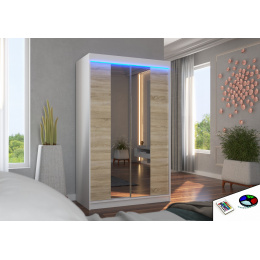 Posuvná skříň se zrcadlem a LED osvětlením MARVIN 120 Bílá+Sonoma