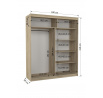 Šatní skříň s posuvnými dveřmi a zrcadlem TOM je ideálním způsobem, jak uspořádat prostor. Nábytek je vybaven prostornými policemi a tyčí, na kterou můžete pověsit šaty, obleky, svrchní oděvy nebo košile. Na čelní straně bylo připevněno zrcadlo, které opticky zvětšuje prostor. Díky tomu, že skříň je posuvná, nemusíte vyčleňovat další místo na otevření dveří, což z ní činí ideální řešení pro malý pokoj nebo úzkou předsíň. Zajímavým prvkem je efektní LED osvětlení, které dodává skříni i místnosti nádherný půvab.