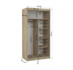 Posuvná skříň RIVA je ideálním způsobem, jak uspořádat prostor. Nábytek je vybaven prostornými policemi a tyčí, na kterou můžete pověsit šaty, obleky, svrchní oděvy nebo košile. Na čelní straně se nacházejí ozdobné horizontální pruhy ve stříbrné barvě, které dodávají nábytku výjimečný styl. Díky tomu, že skříň je posuvná, nemusíte vyčleňovat další místo na otevření dveří, což z ní činí ideální řešení pro malý pokoj nebo úzkou předsíň.