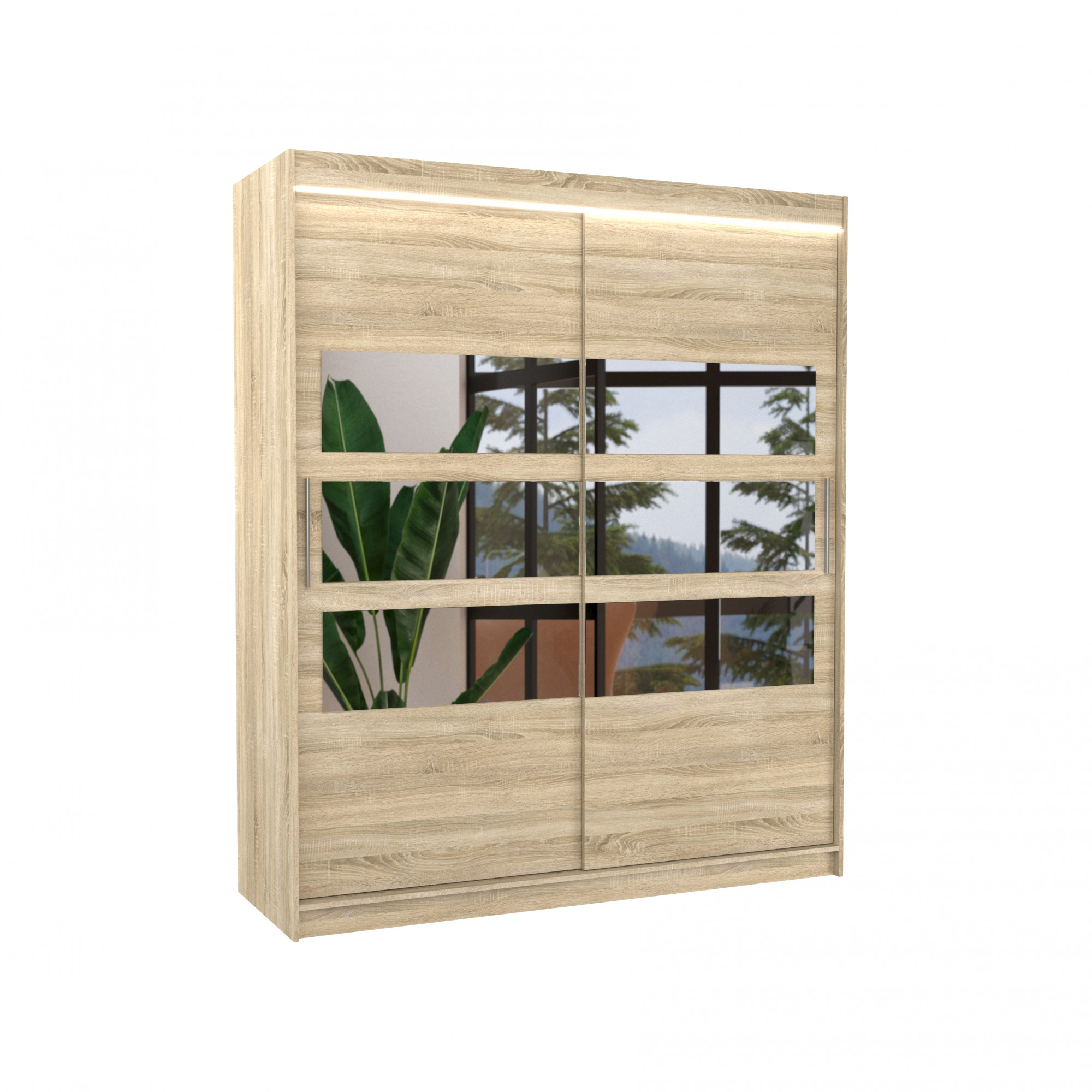 Posuvná skříň se zrcadlem a LED osvětlením TOLEDO 180 Sonoma+Sonoma