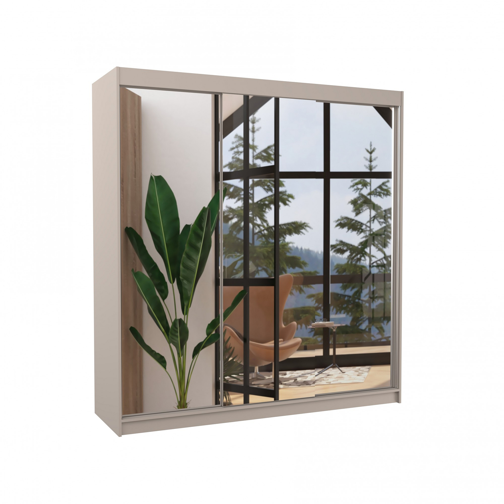 Posuvná skříň se zrcadlem AUSTIN 200 Kašmír+Kašmír